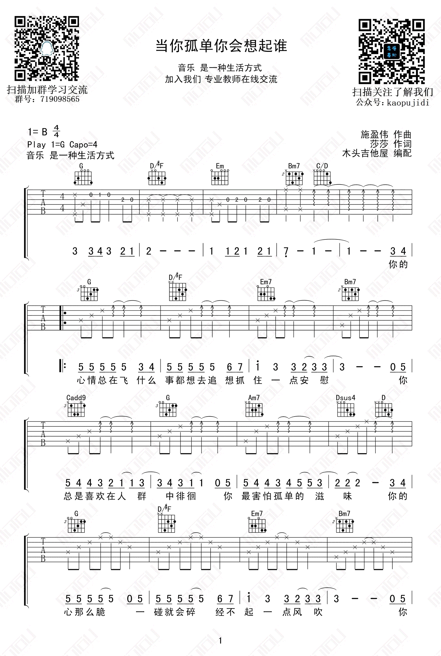 - 莫里森与杂货铺吉他谱_马赛克乐队_G调弹唱谱_高清版