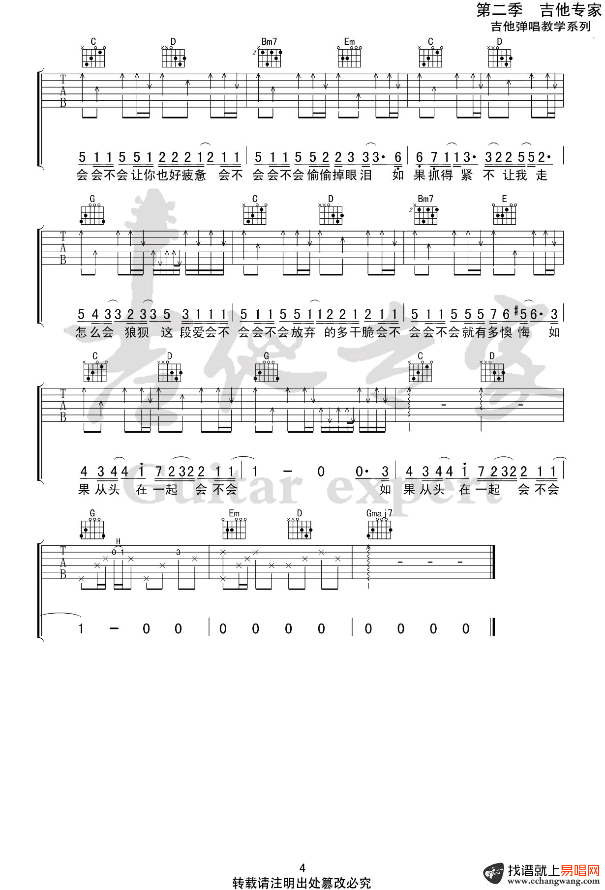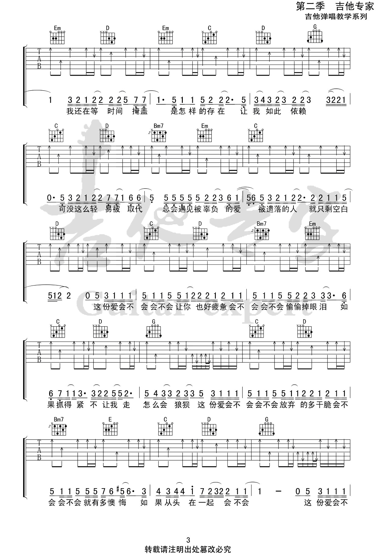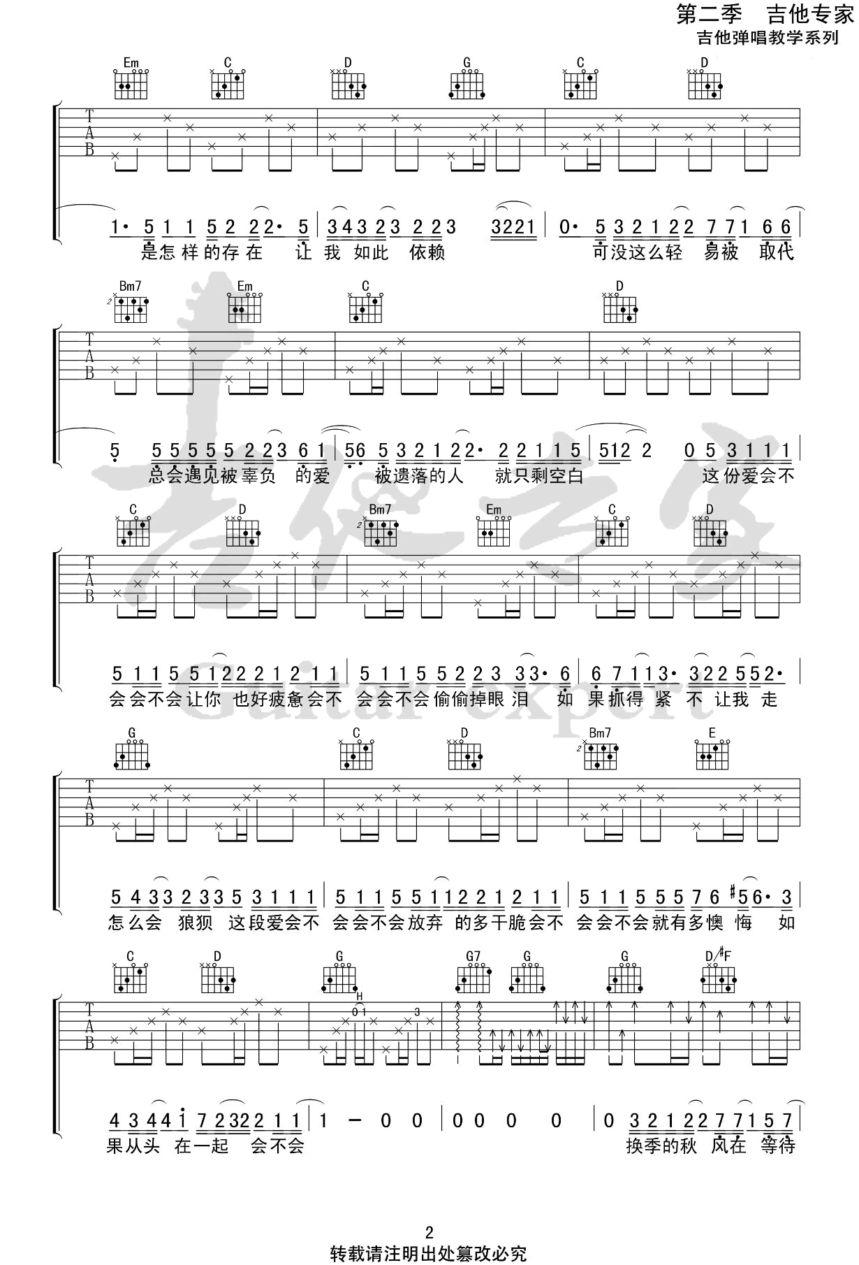 - 会不会吉他谱_刘大壮_G调_弹唱谱_原版六线谱
