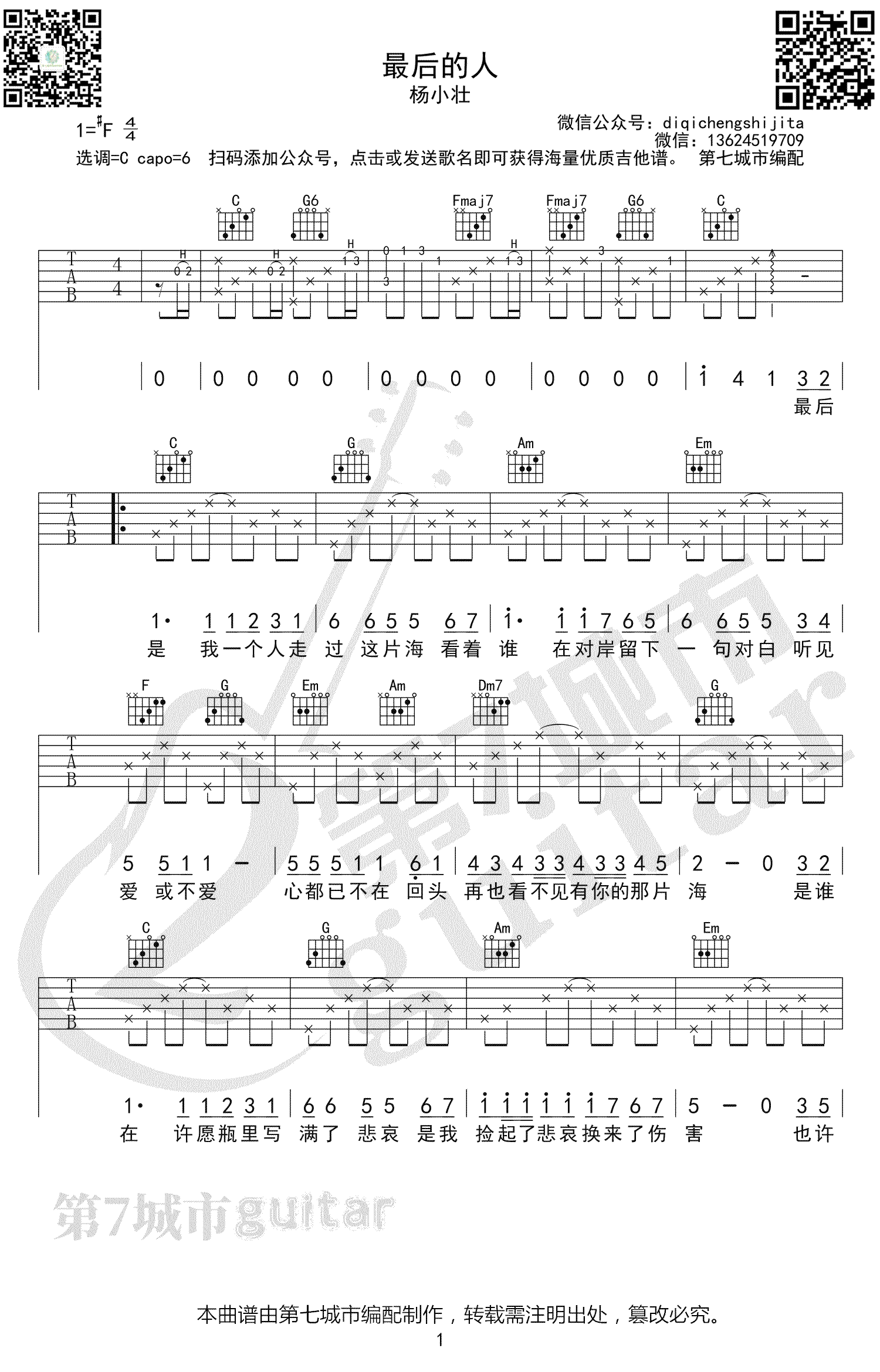 - 最后的人吉他谱_杨小壮_C调弹唱谱_抖音热门歌曲