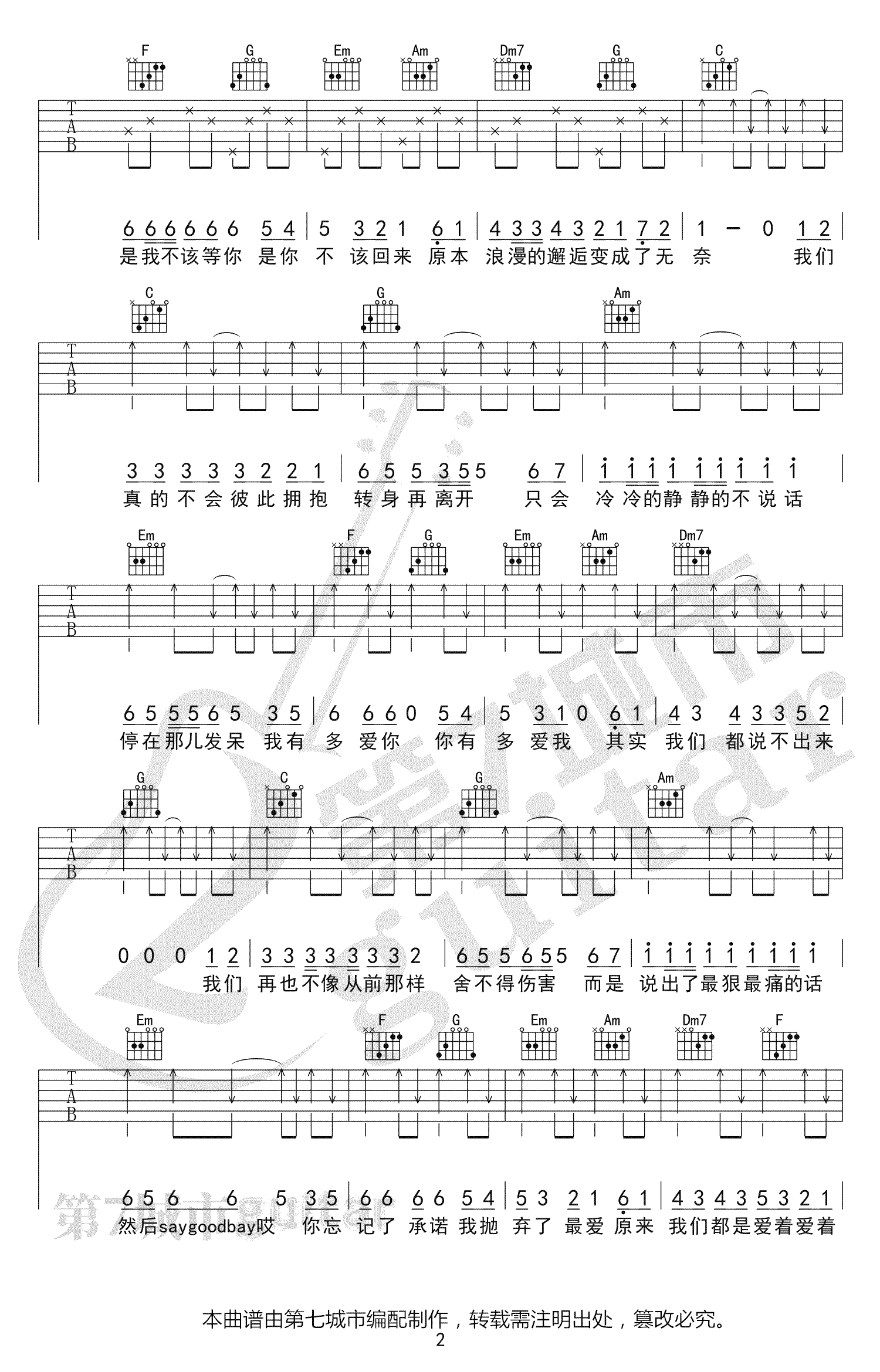 - 不该用情吉他谱_莫叫姐姐_C调_吉他弹唱视频