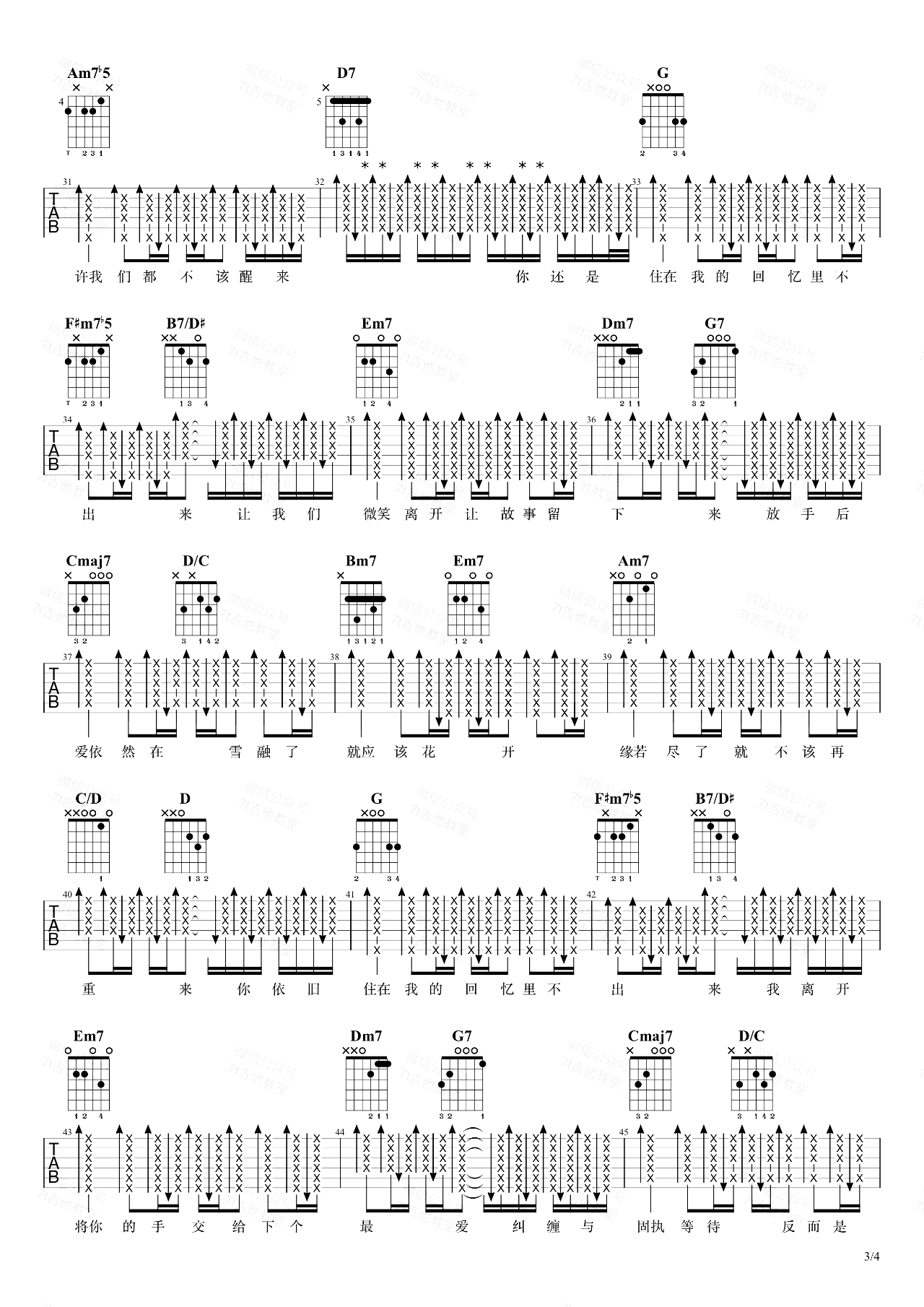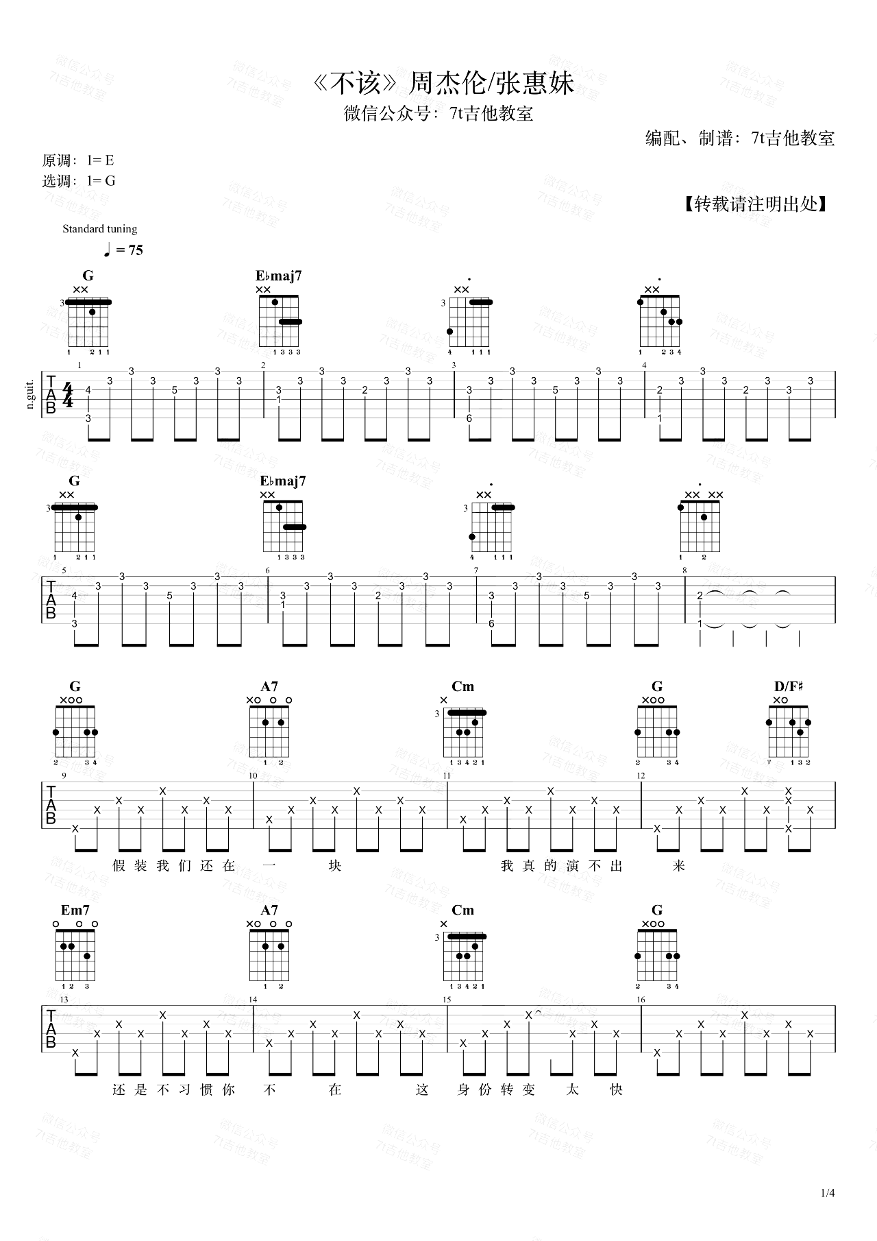 - 不该吉他谱_周杰伦/张惠妹_G调弹唱谱_吉他演示视频
