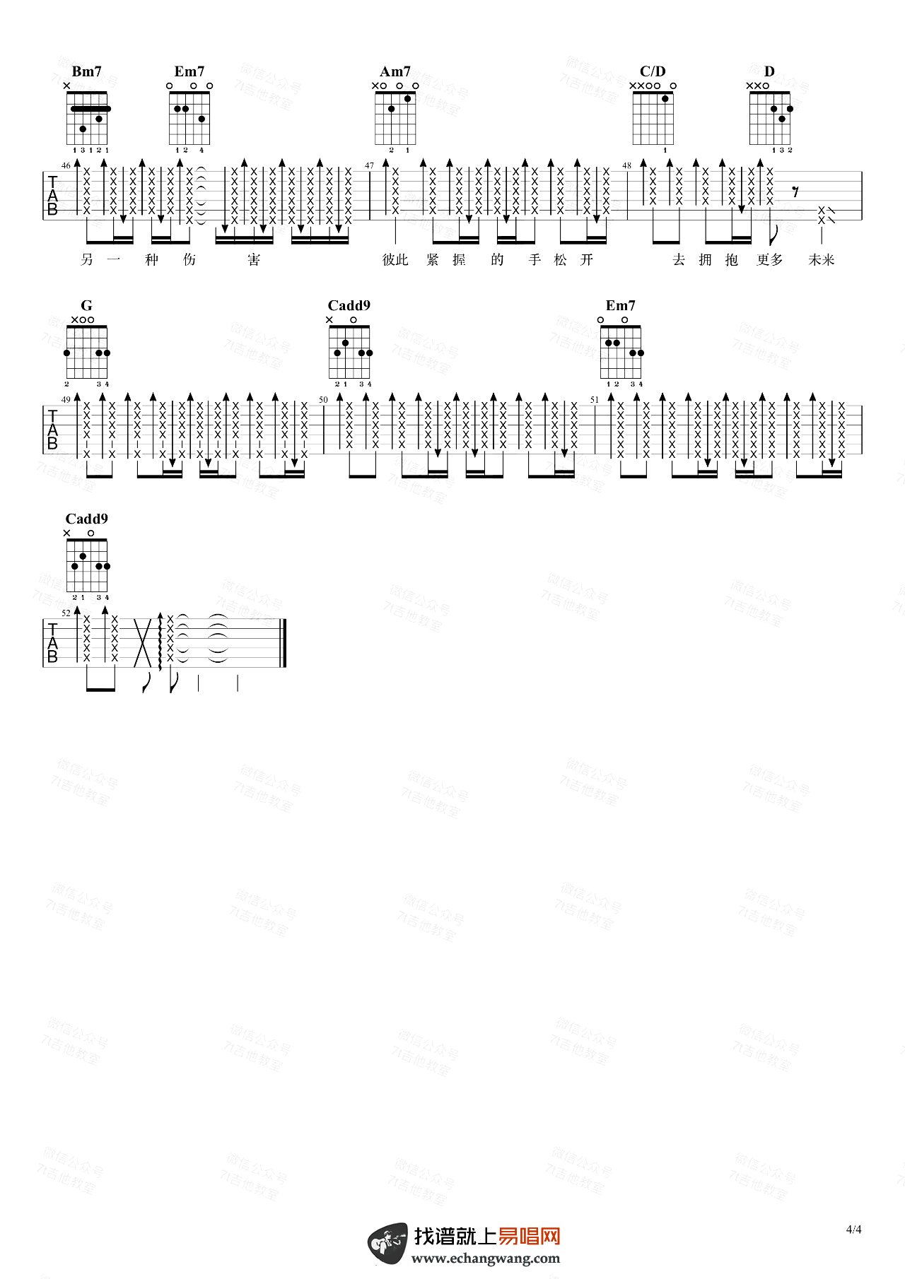 - 爱人错过吉他谱_告五人_C调原版_弹唱六线谱