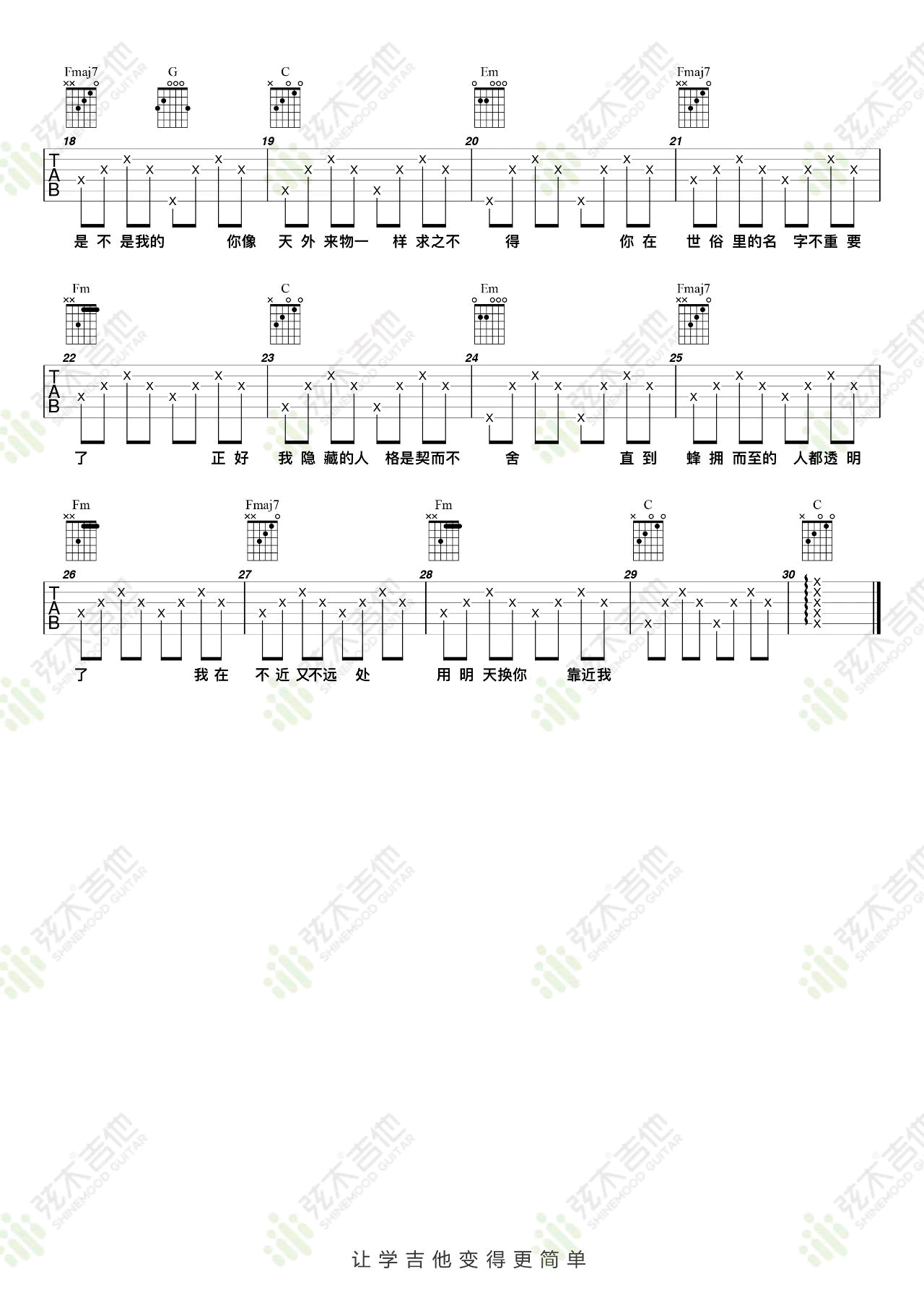 - 薛之谦《不爱我》吉他谱_G调_弹唱六线谱