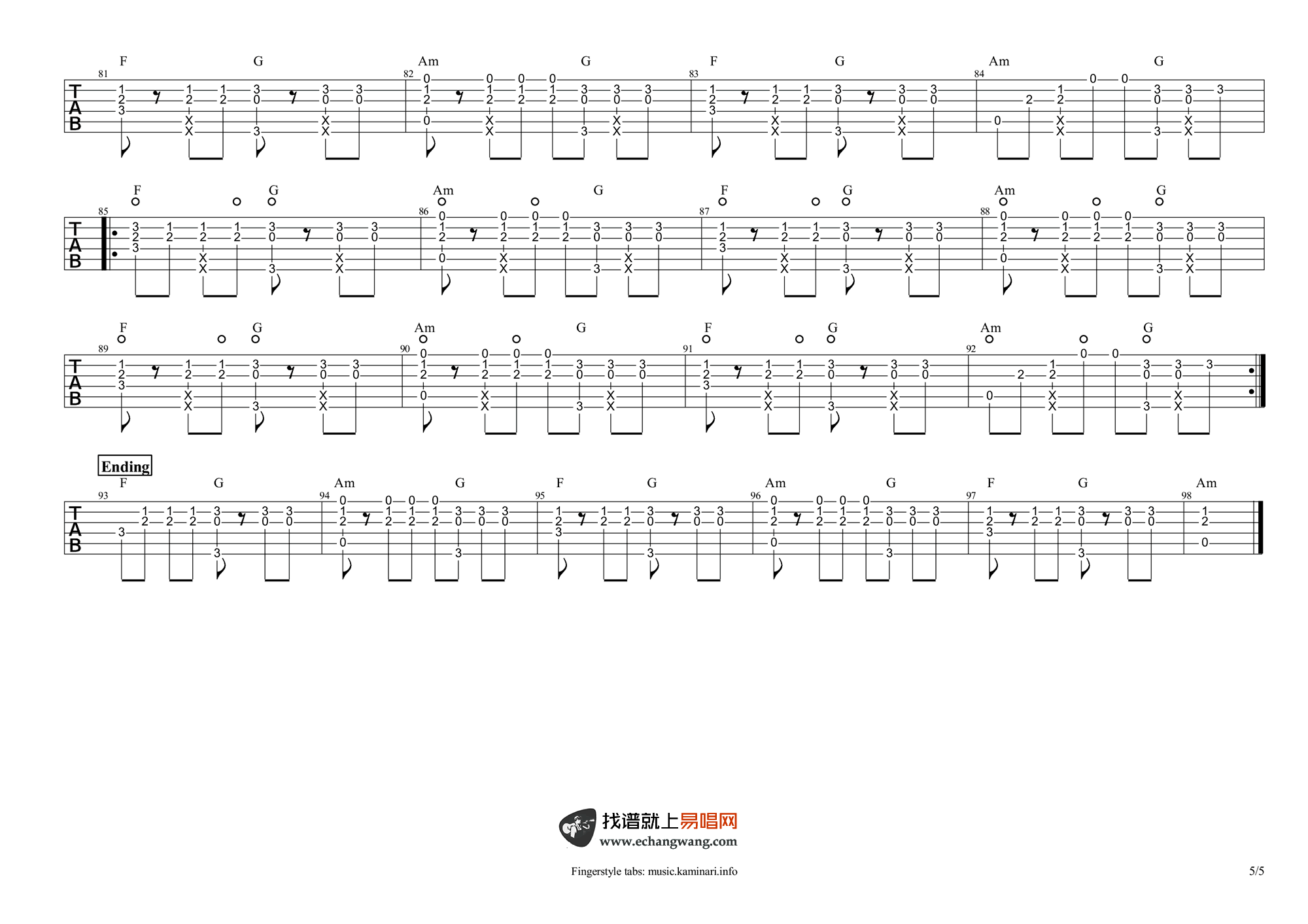 - 爱人错过吉他谱_告五人_C调原版_弹唱六线谱