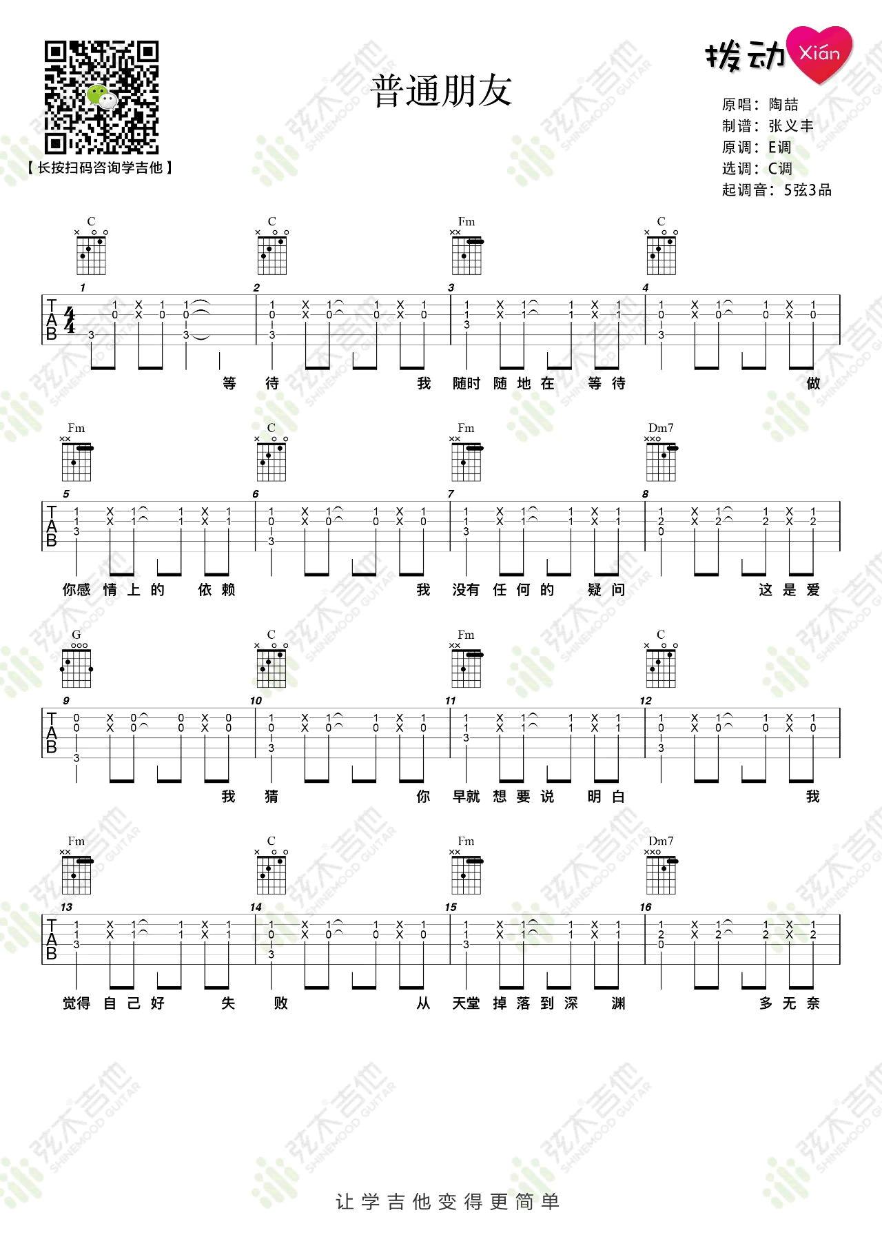 - 普通朋友吉他谱_陶喆_C调弹唱谱_吉他教学视频