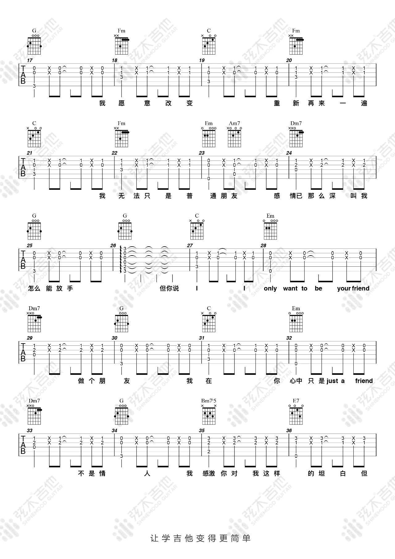 - 普通朋友吉他谱 陶喆 F调高清版弹唱谱