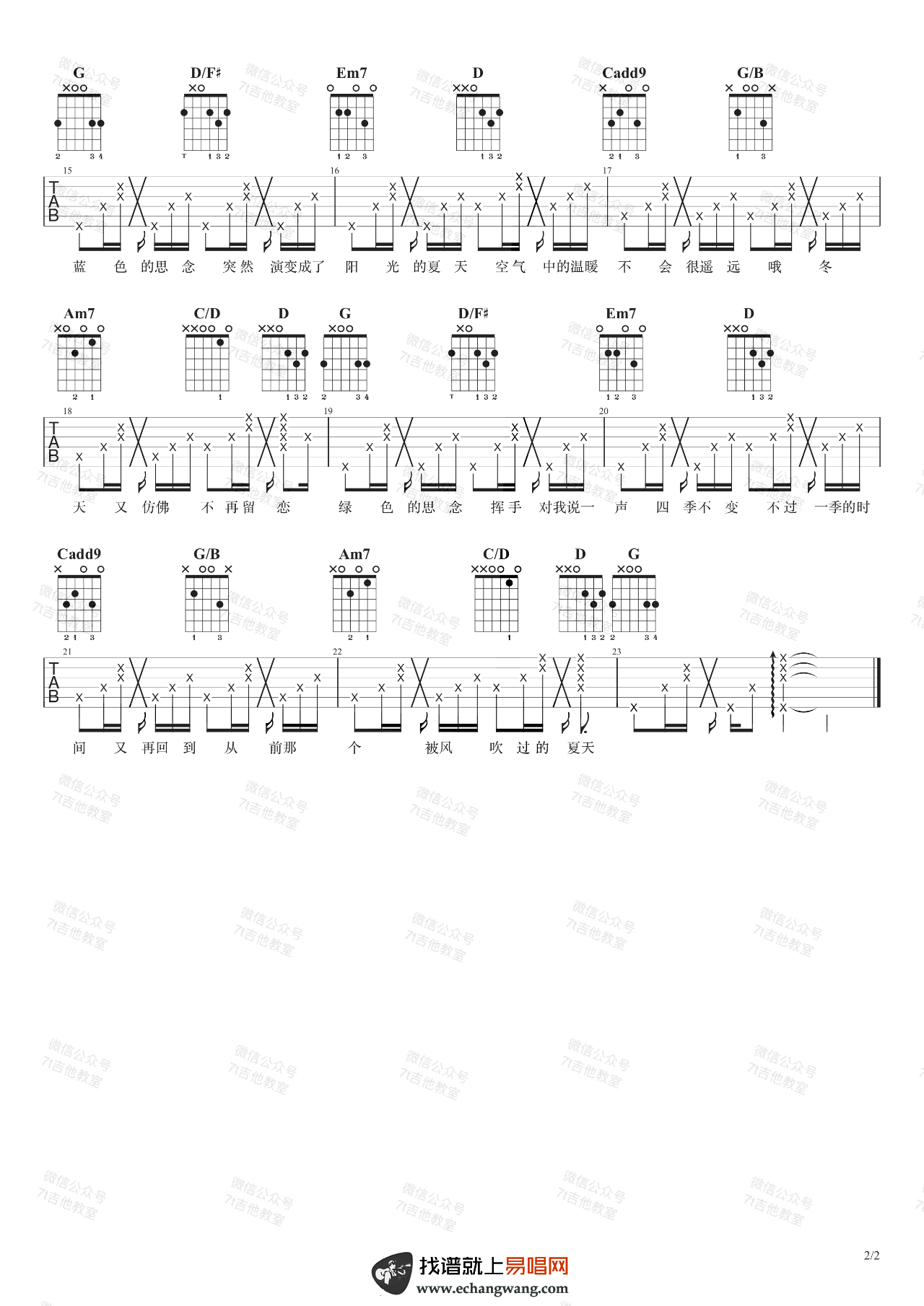 - 被风吹过的夏天吉他谱_林俊杰/金莎_吉他弹唱演示视频