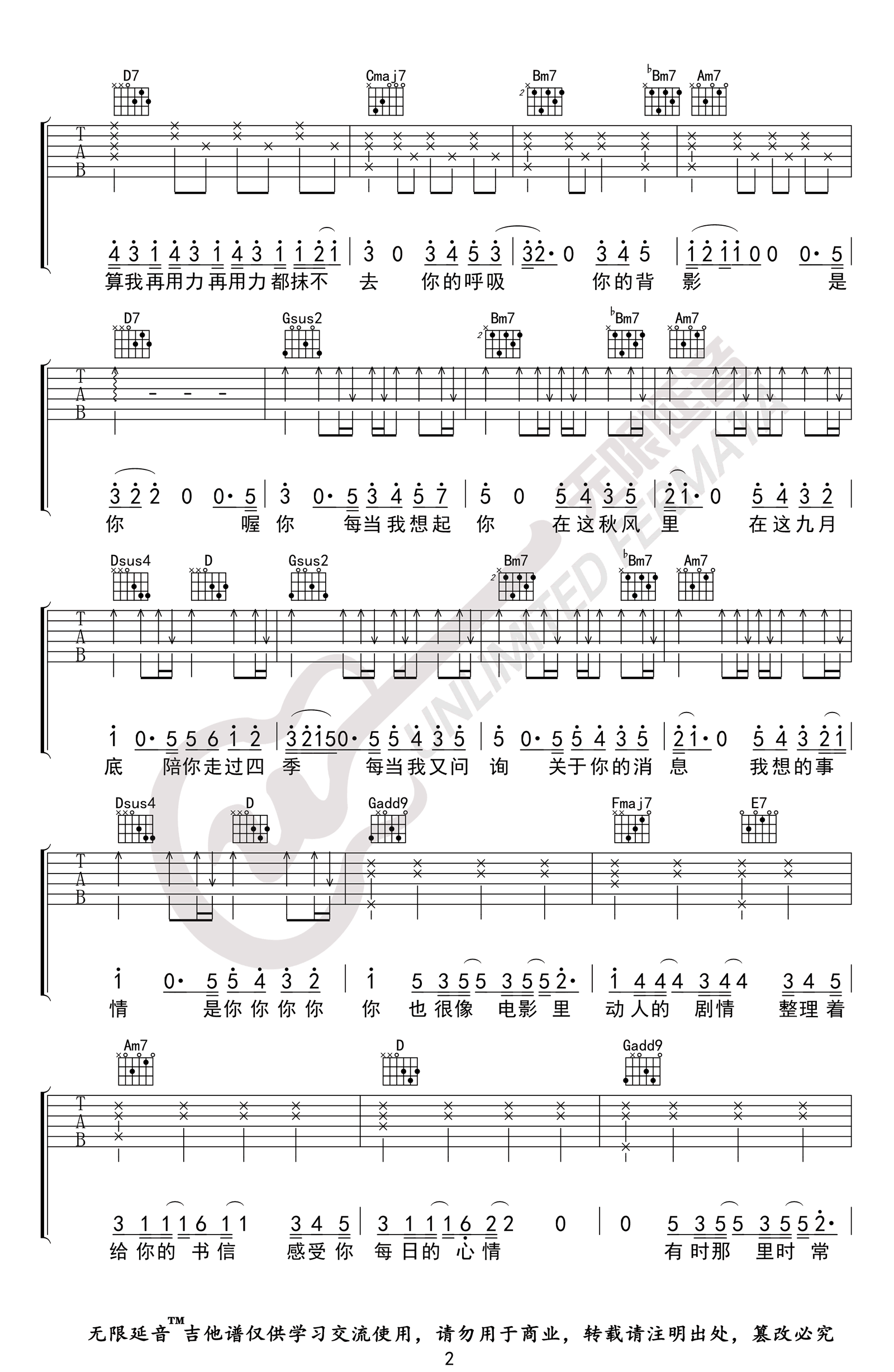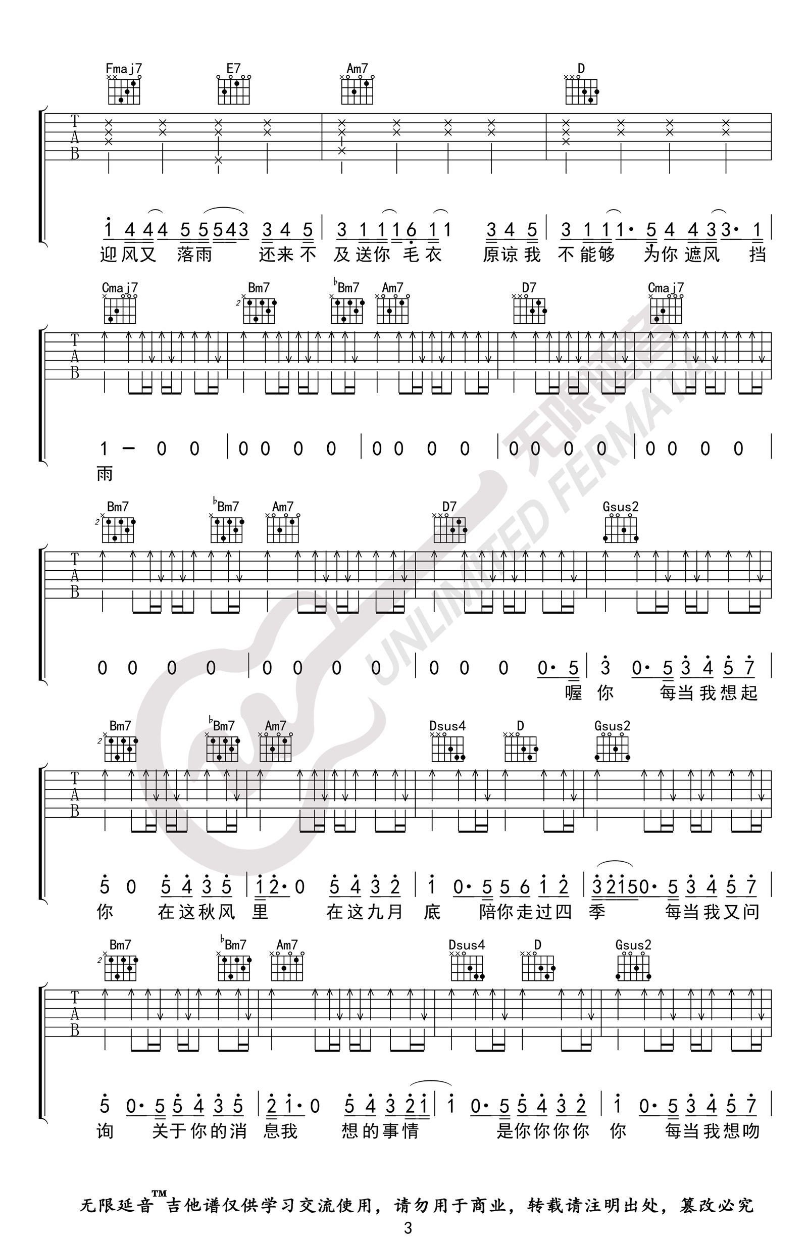 - 九月底吉他谱_余佳运_G调弹唱谱_高清六线谱