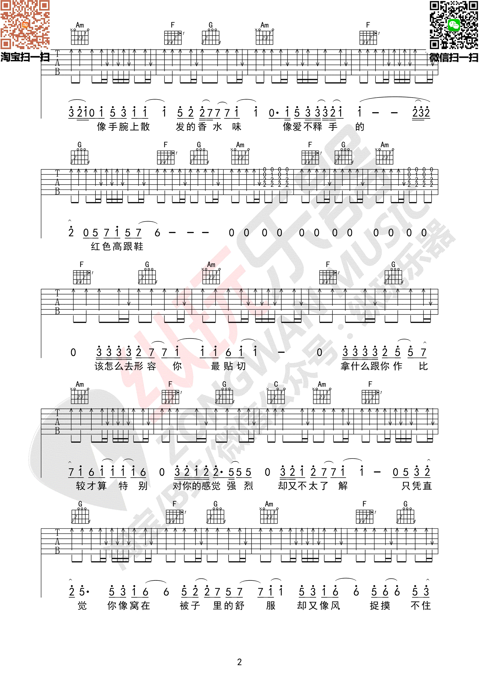 - 红色高跟鞋吉他谱_原版弹唱谱_蔡健雅_吉他演示视频