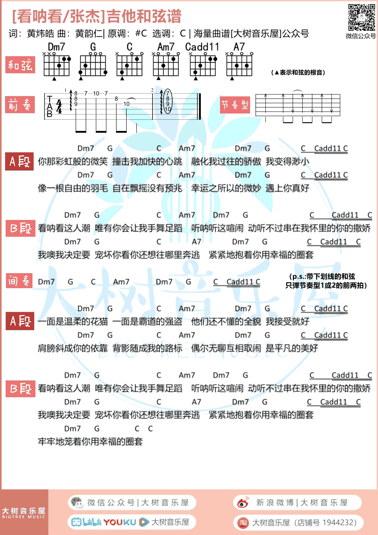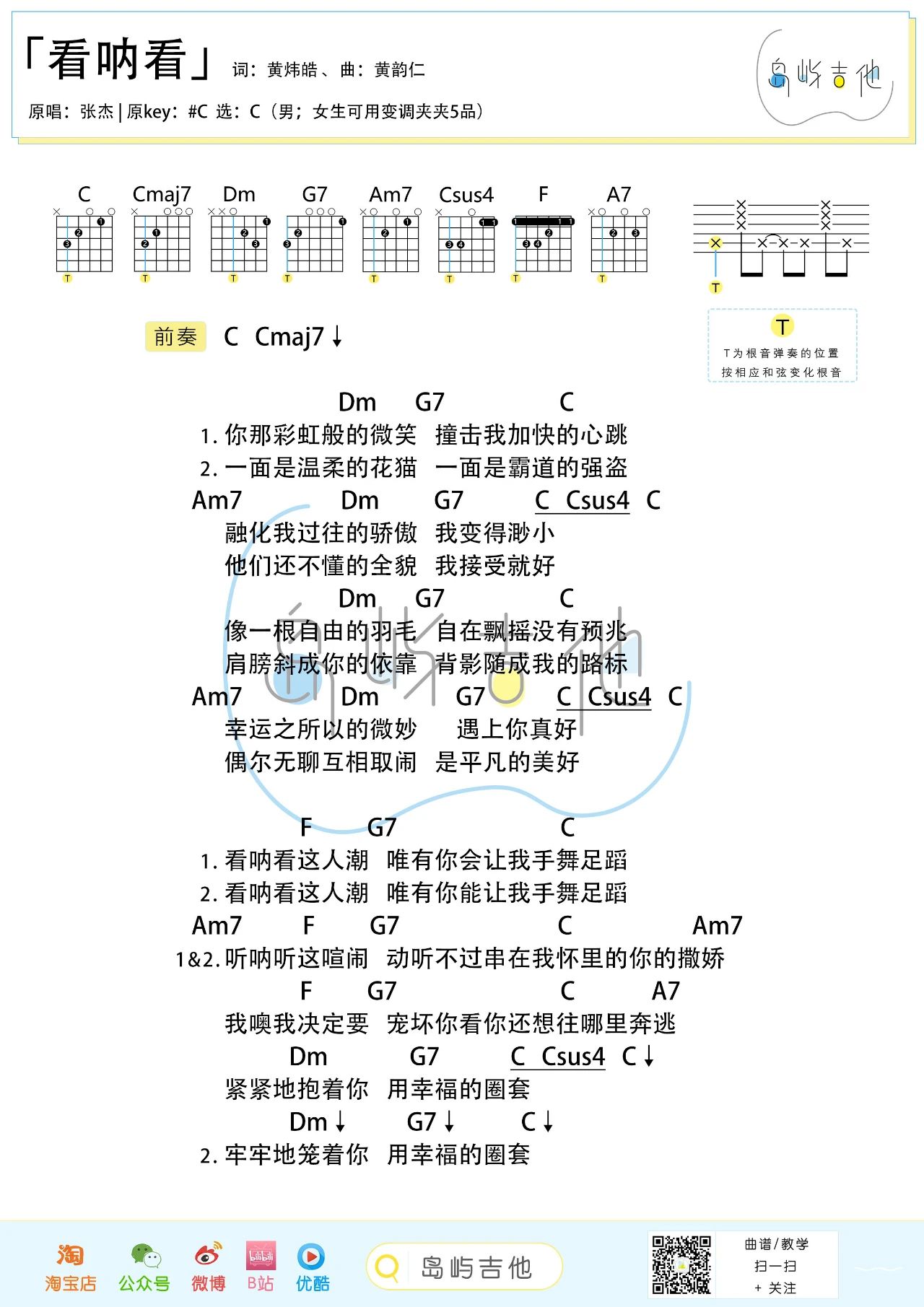 - 看呐看吉他谱_张杰_C调弹唱谱_和弦图片谱