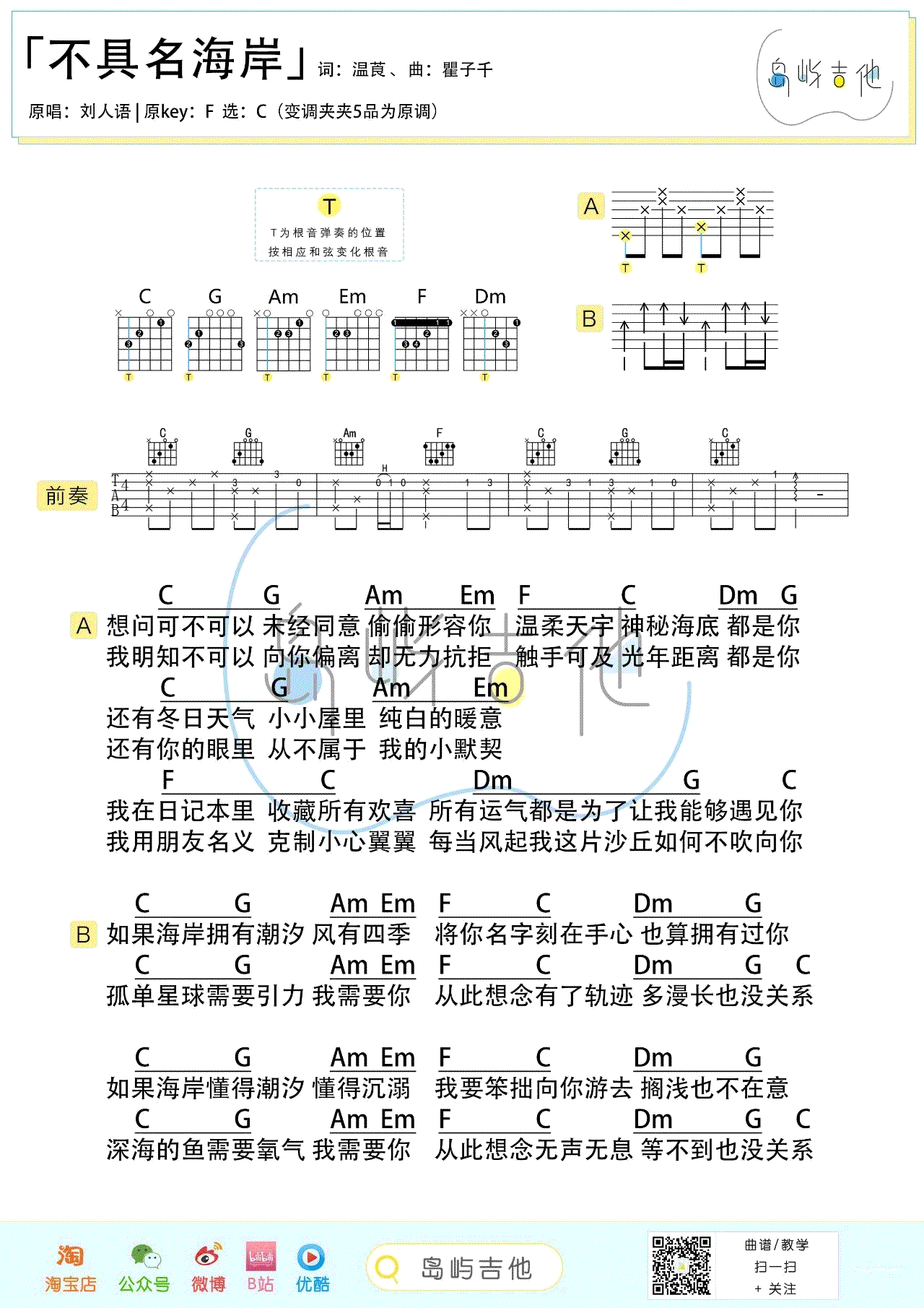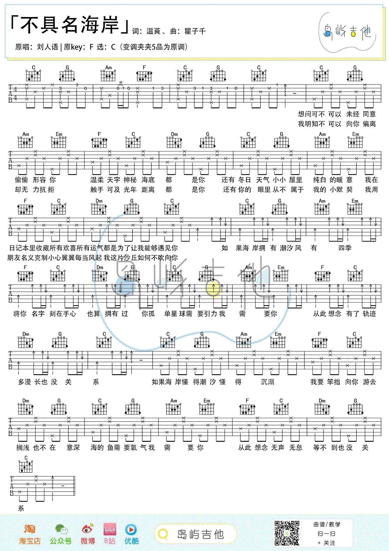 - 不具名海岸吉他谱_刘人语_C调弹唱谱_吉他演示视频