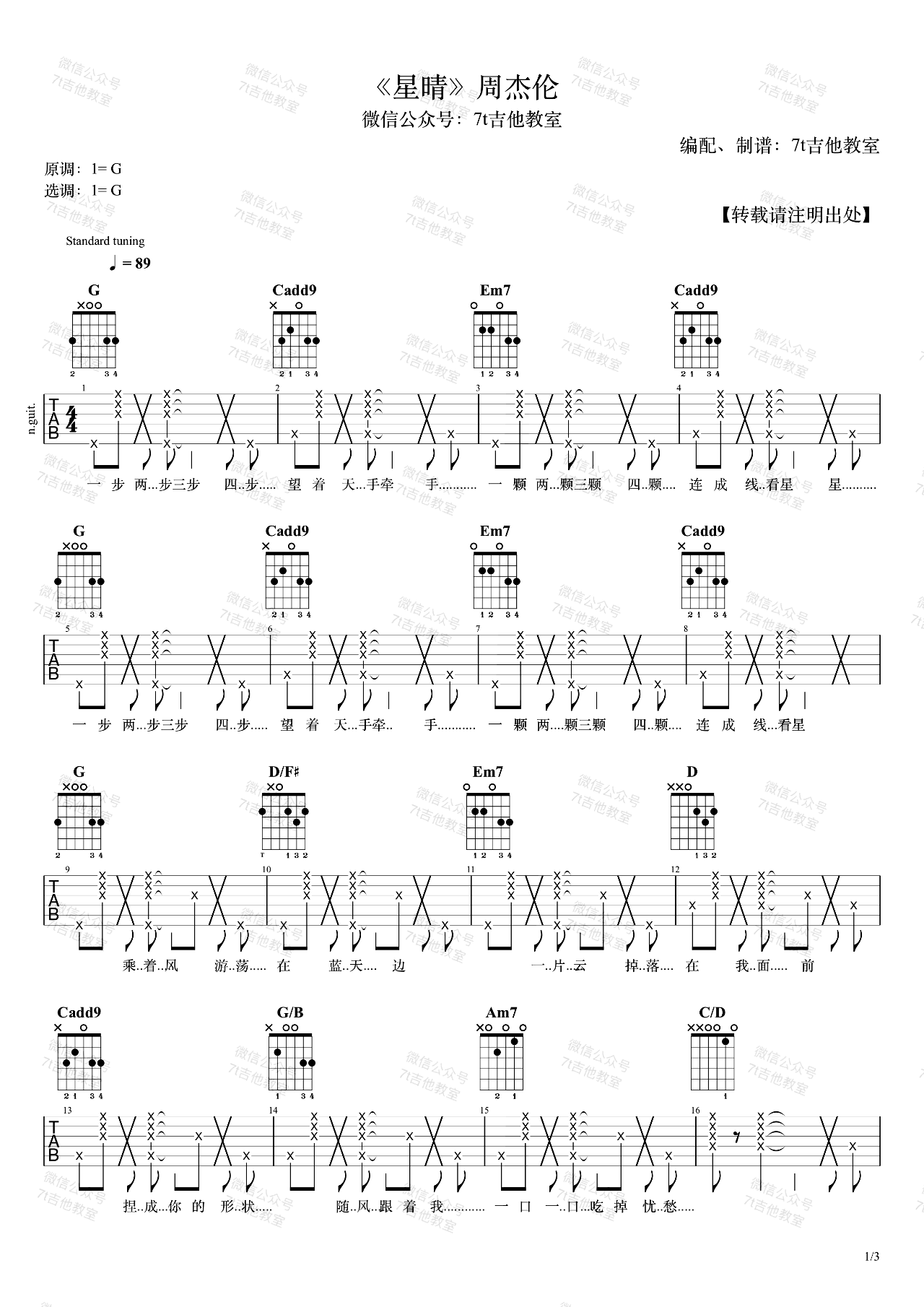 - 星晴吉他谱_周杰伦_G调女生版_弹唱演示视频