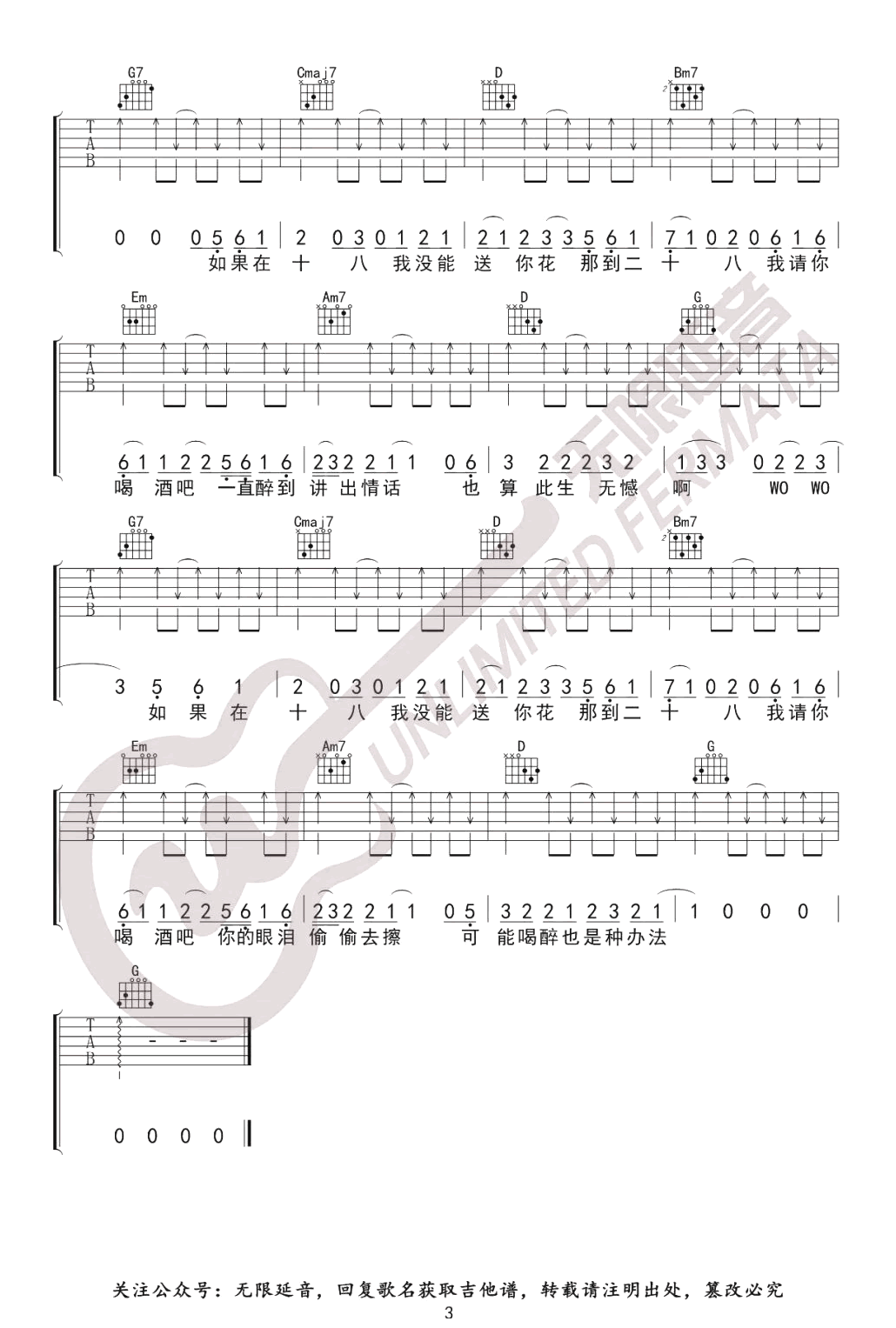 - 千千万万吉他谱_深海鱼子酱_G调弹唱谱_原版六线谱