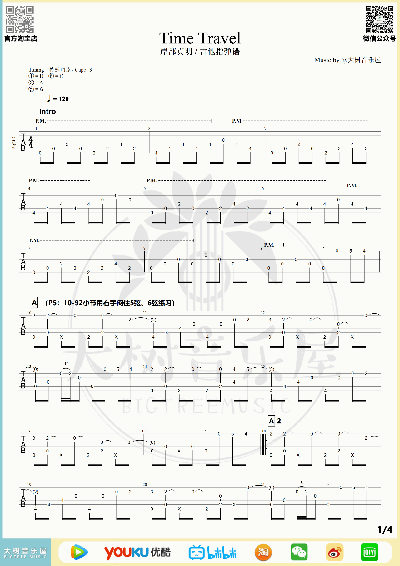 - Time Travel指弹谱_岸部真明_吉他独奏谱_指弹演示视频