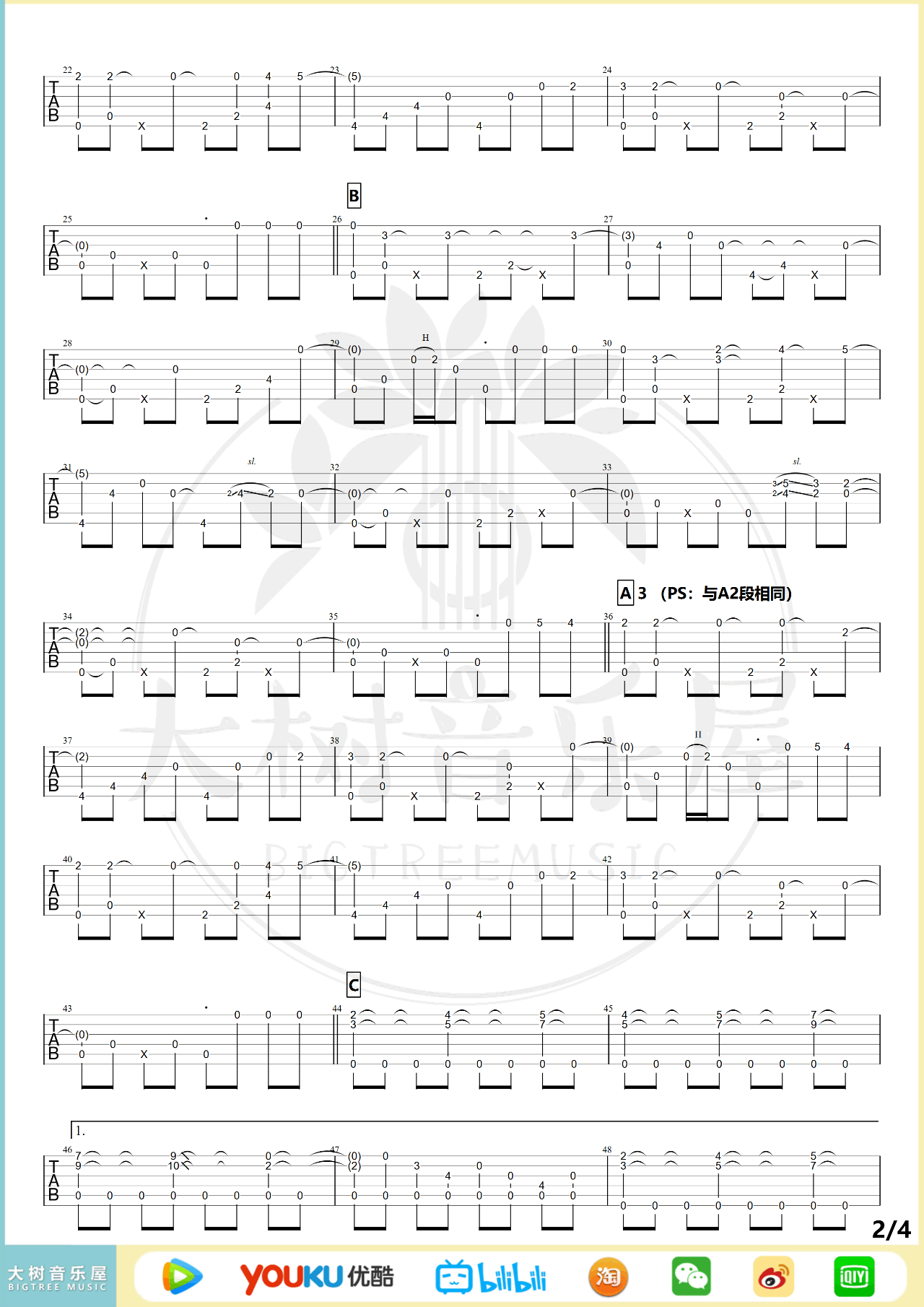 - 大鱼指弹谱_周深_C调吉他独奏谱_指弹演示视频