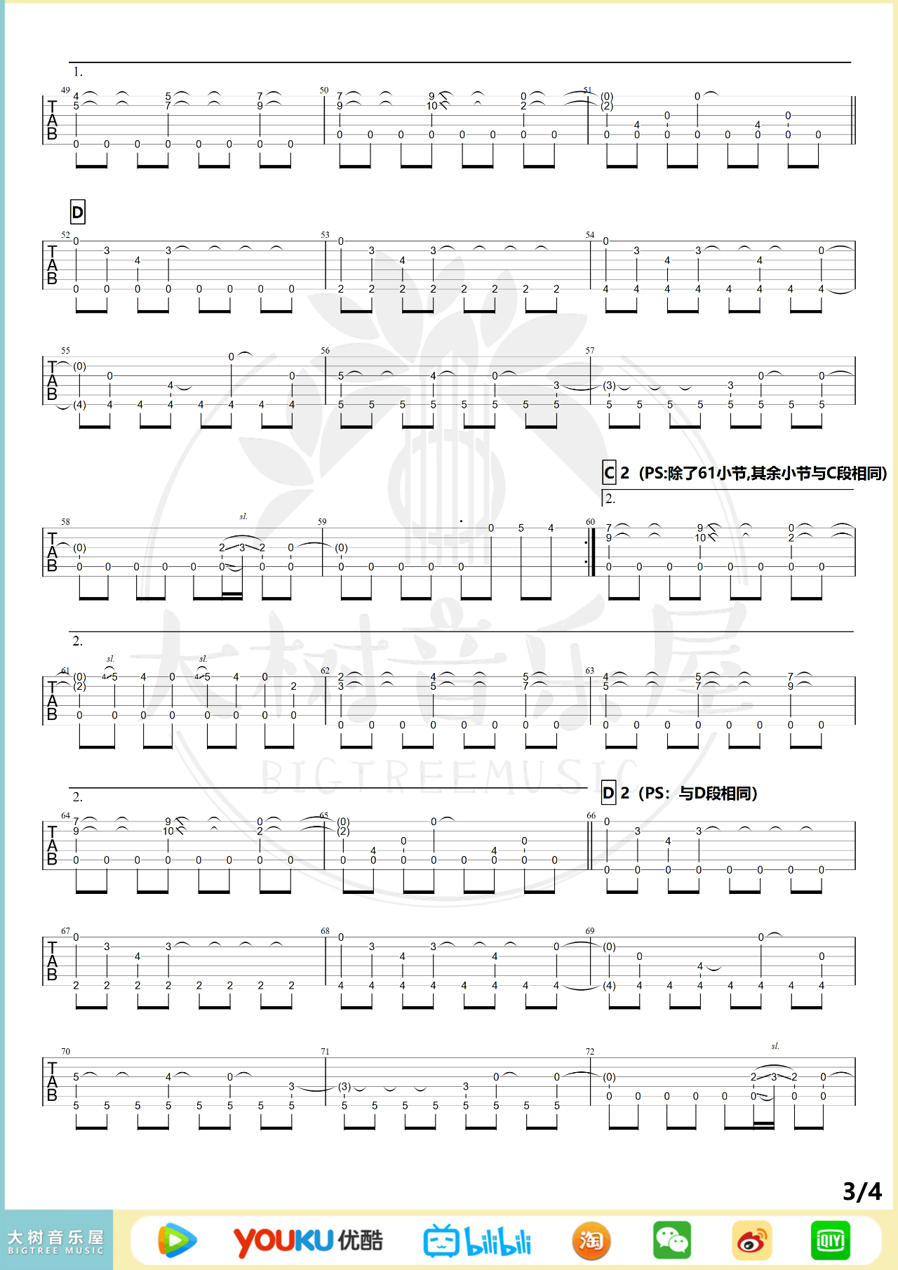 - Sunflower指弹谱_孙培博《太阳花》独奏谱_吉他指弹视频