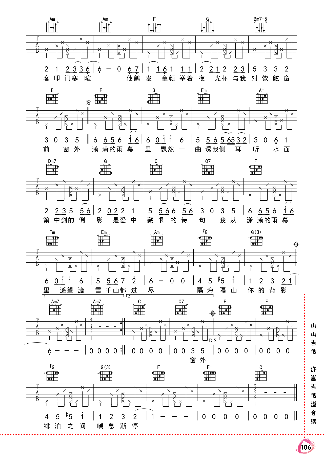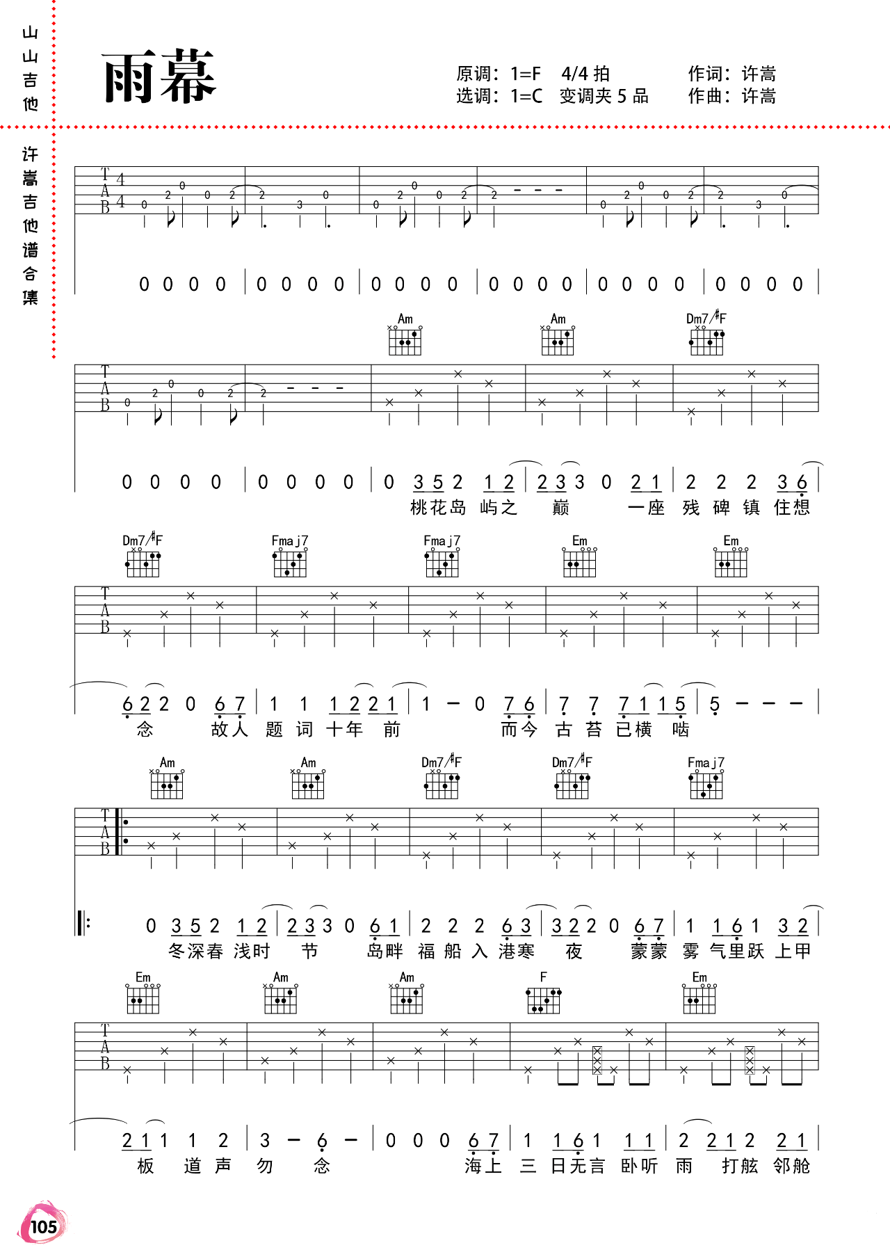 - 雨幕吉他谱_许嵩_C调弹唱谱_吉他演示视频