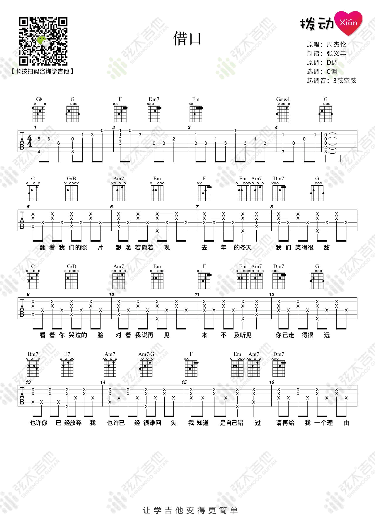 - 借口吉他谱_C调简单版_周杰伦《借口》吉他弹唱视频