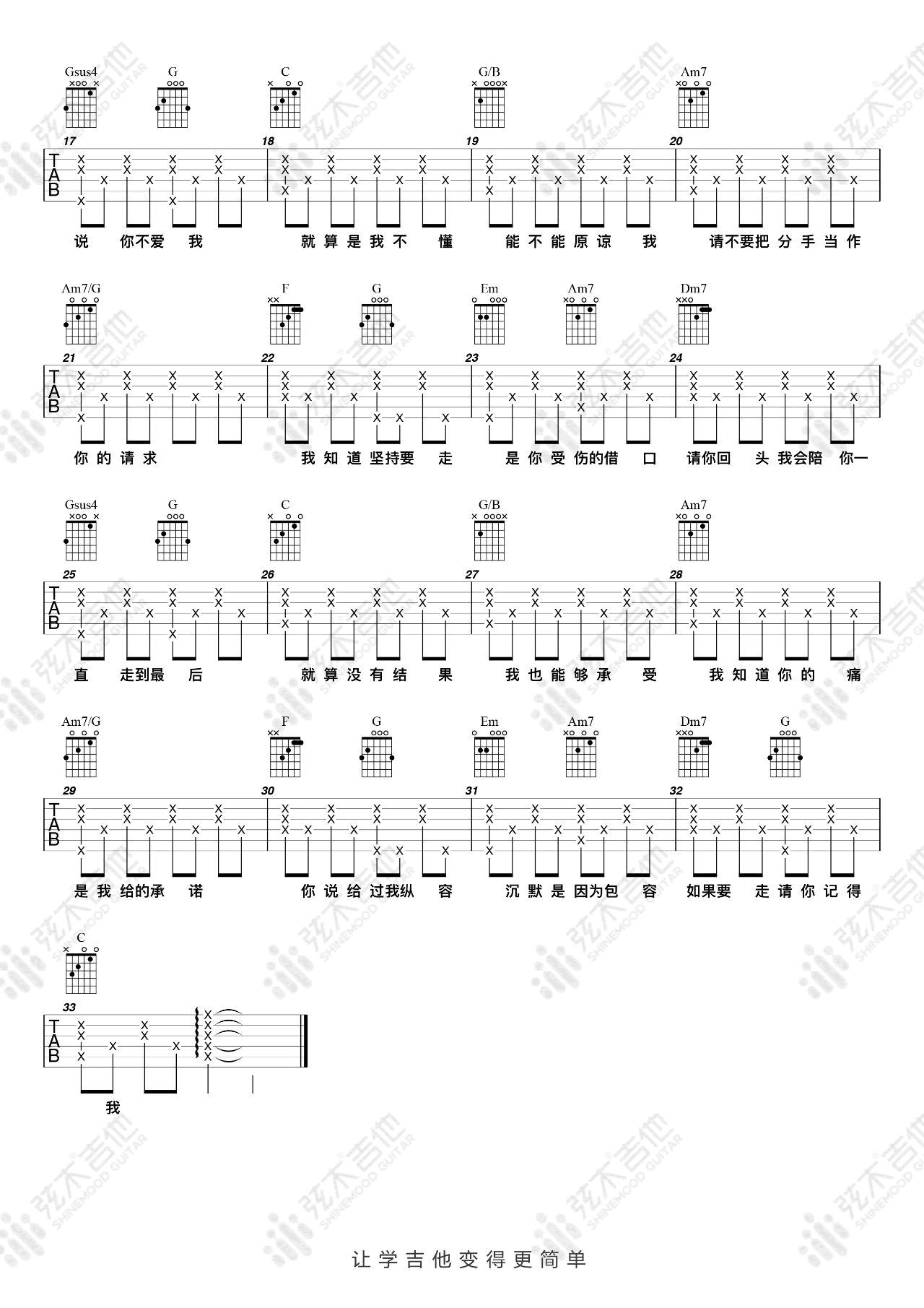 - 让我留在你身边吉他谱 陈奕迅 吉他教学视频 男女生通