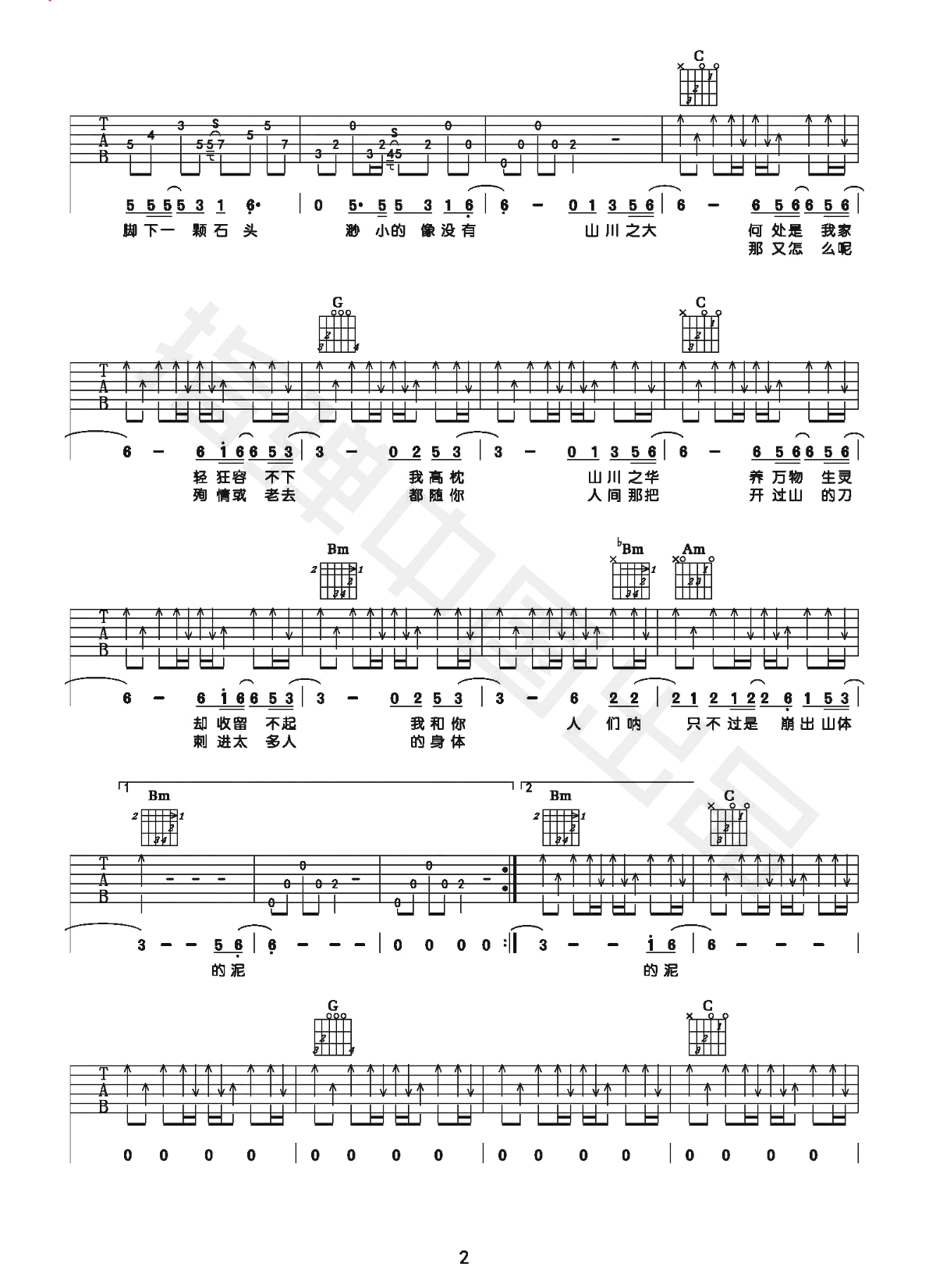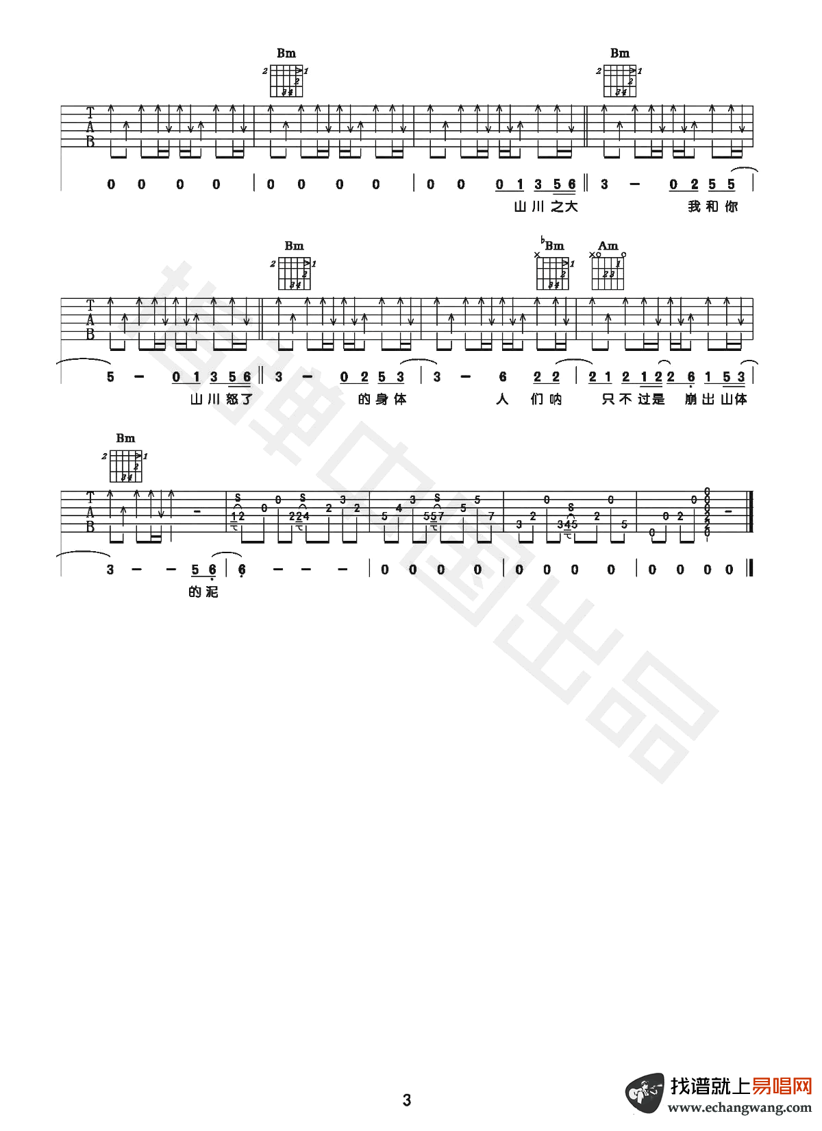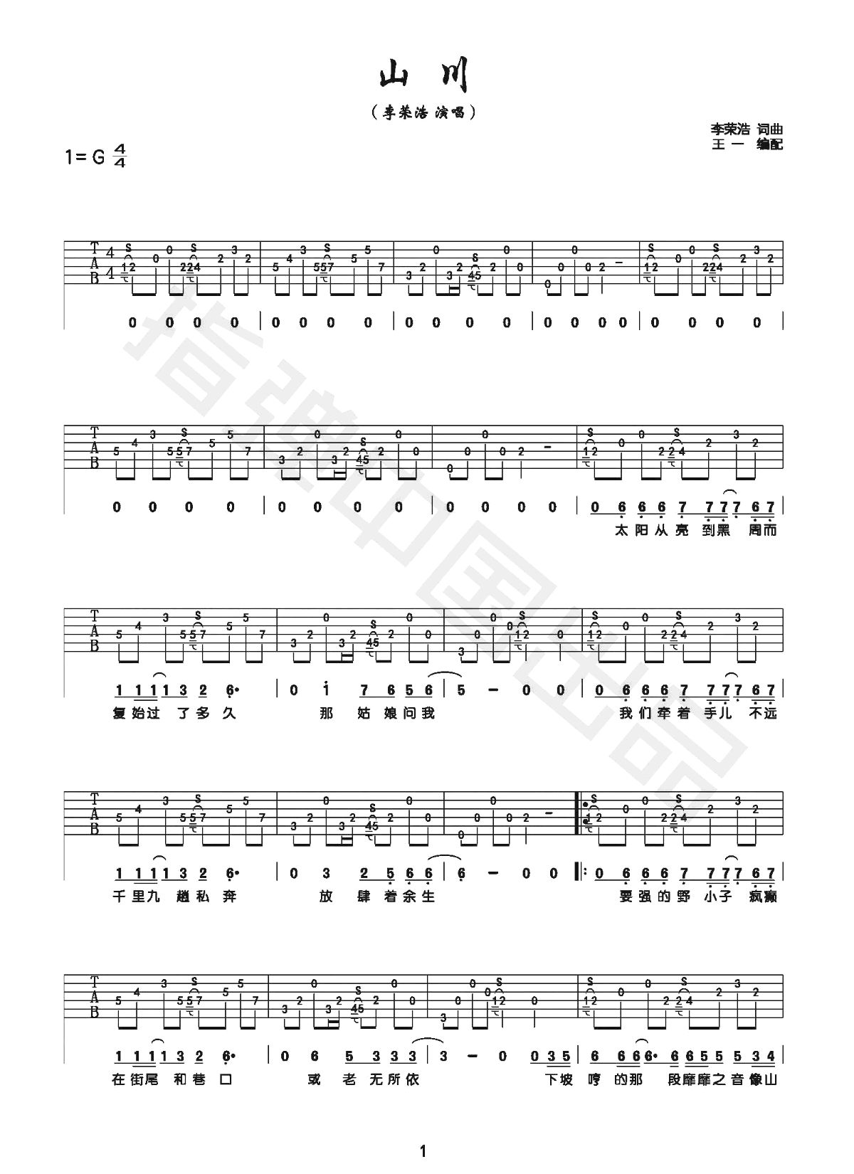 - 山川吉他谱_李荣浩_G调弹唱谱_《山川》六线谱