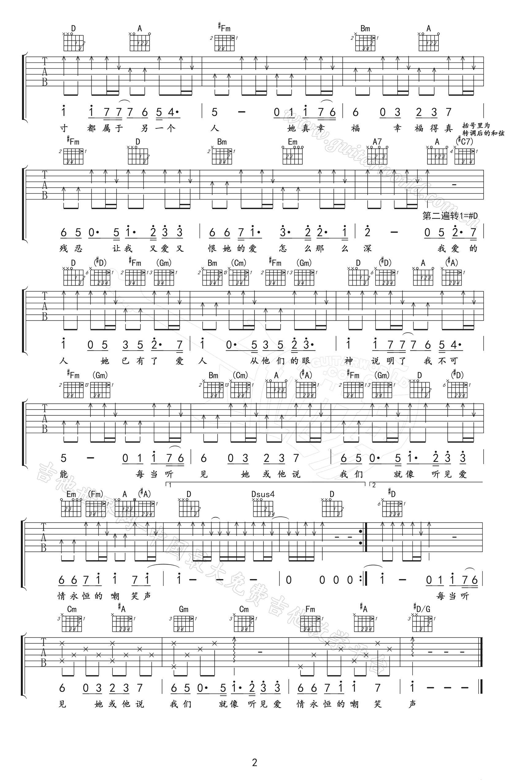 - 桥边姑娘吉他谱_海伦_C调入门版+原版_六线谱