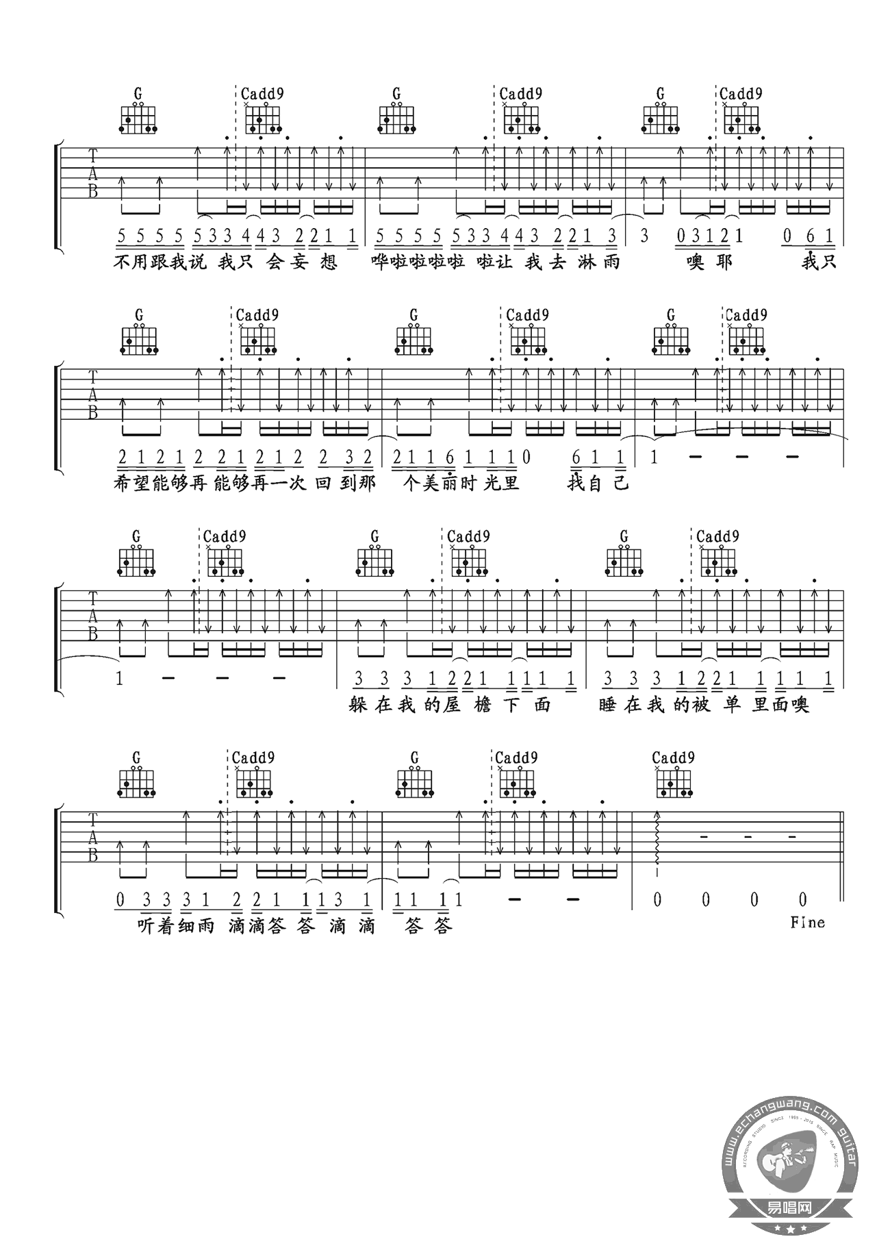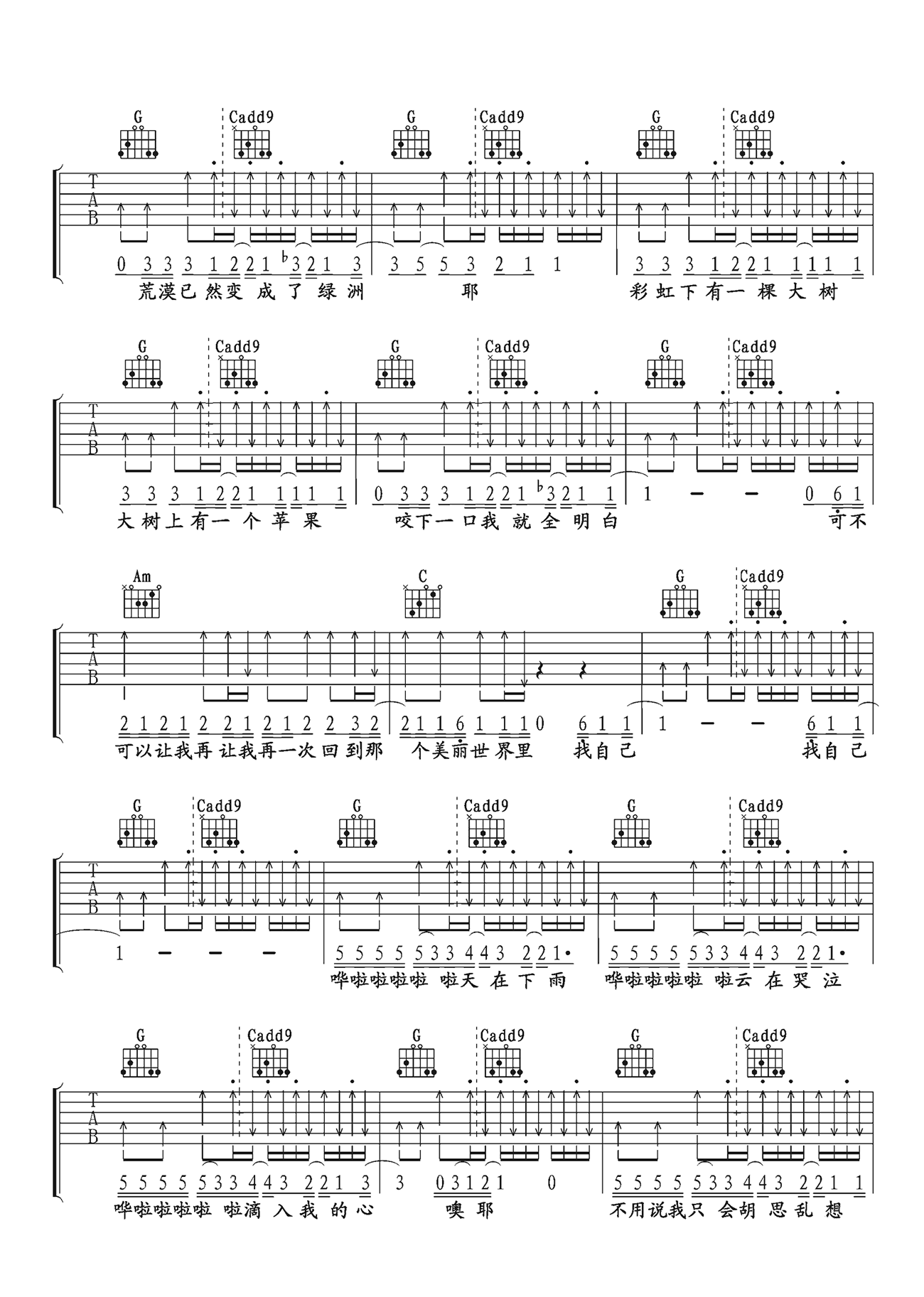 找自己 - 陶喆 词:陶喆 曲:陶喆 耶啦 昨天晚上做了个梦 我走进撒哈拉沙漠 空无一人站在太阳下 摄氏六十六点六度 快要焚化我的眼珠 忽然一场大雨降下来 汗水被那雨水冲走 结束四十天的折磨 荒漠已然变成了绿洲 彩虹下有一棵大树 大树上有一个苹果 咬下一口我就全明白 可不可以让我再让我 再一次回到那个美丽世界里 找自己找自己 哗啦啦啦啦天在下雨 哗啦啦啦啦云在哭泣 哗啦啦啦啦滴入我的心 不用说我只会胡思乱想 不用跟我说我只会妄想 哗啦啦啦啦让我去淋雨 我只希望能够再能够 再一次回到那个美丽时光里 找自己 挤在公车像个沙丁鱼 上班下班每天是规律 这么多的人到哪里去 每个面孔写着无奈 爸爸妈妈彼此没有爱 难道这就是生命的真理 可不可以让我再让我 再一次回到那个美丽世界里 去逃避去逃避 哗啦啦啦啦天在下雨 哗啦啦啦啦云在哭泣 哗啦啦啦啦滴入我的心 不用说我只会胡思乱想 不用跟我说我只会妄想 哗啦啦啦啦让我去淋雨 我只希望能够再能够 再一次回到那个美丽时光里 找自己 躲在我的屋檐下面哦 睡在我的被单里面哦 听着细雨滴滴答答 滴滴答答滴滴答答 哗啦啦啦啦啦天在下雨 哗啦啦啦啦啦云在哭泣 哗啦啦啦啦啦滴入我的心 不用说我只会胡思乱想 不用跟我说我只会妄想 哗啦啦啦啦啦让我去淋雨 我只希望能够再能够 再一次回到那个美丽时光里 找回自己 哗啦啦啦啦啦天在下雨 哗啦啦啦啦啦云在哭泣 哗啦啦啦啦啦滴入我的心 不用说我只会胡思乱想 不用跟我说我只会妄想 哗啦啦啦啦啦让我去淋雨 我只希望能够再能够 再一次回到那个美丽时光里 Da la la do 不用说我只会胡思乱想 不用跟我说我只会妄想 哗啦啦啦啦啦让我去淋雨 我只希望能够再能够 再一次回到那个美丽时光里 哗啦啦啦啦天在下雨 哗啦啦啦啦啦云在哭泣 哗啦啦啦啦啦滴入我的心 滴入我的心 不用说我只会胡思乱想 不用跟我说我只会妄想 哗啦啦啦啦啦让我去淋雨 我只希望能够再能够 再一次