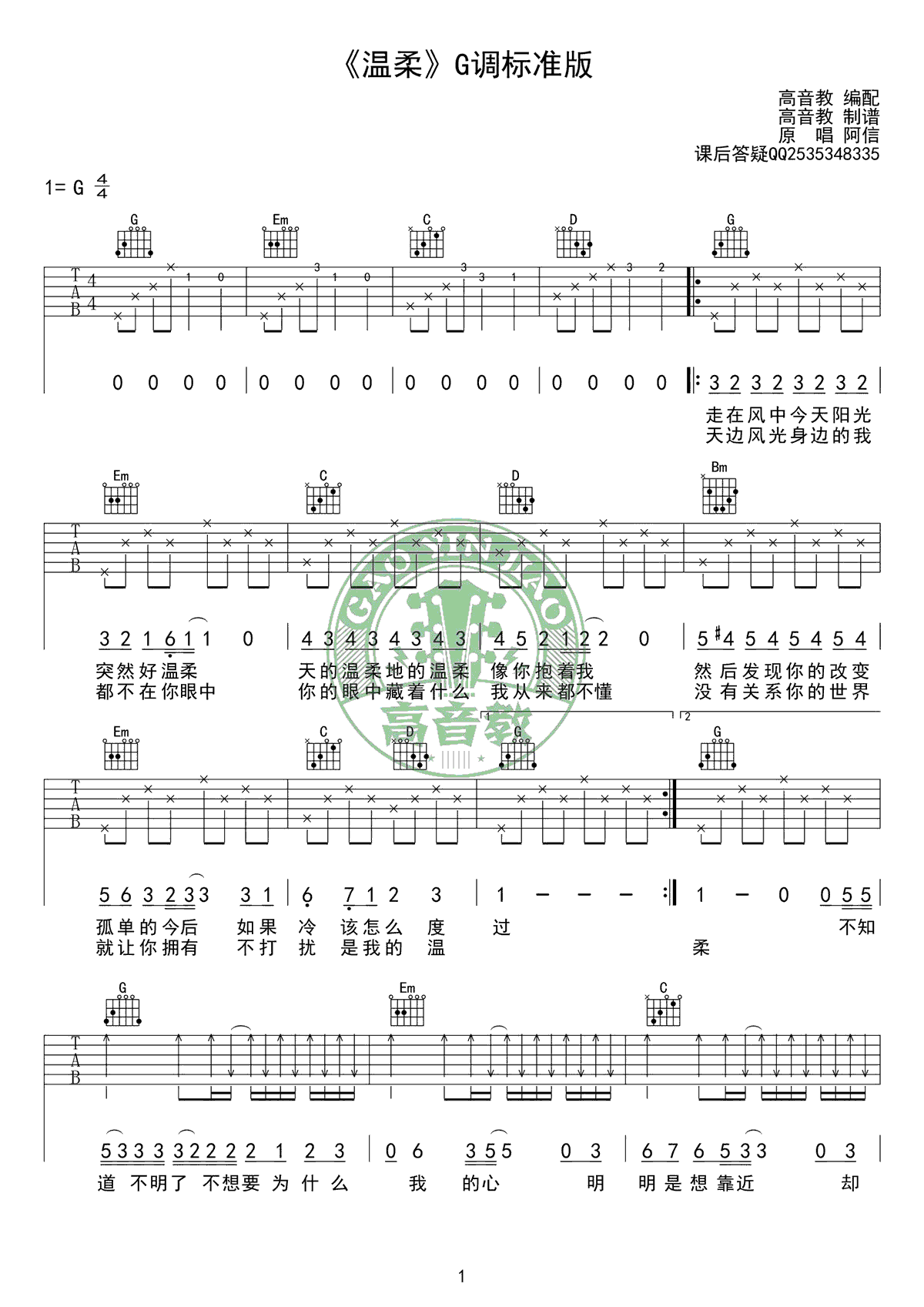 - 温柔吉他谱 五月天 C调简单版 新手入门教学视频