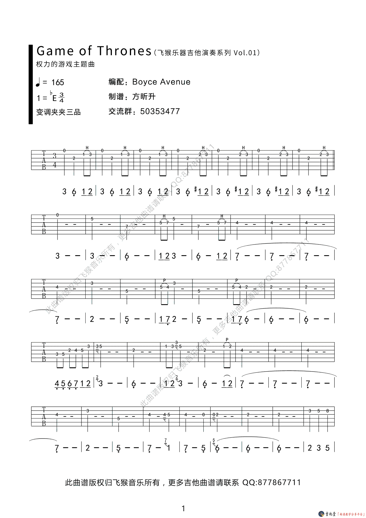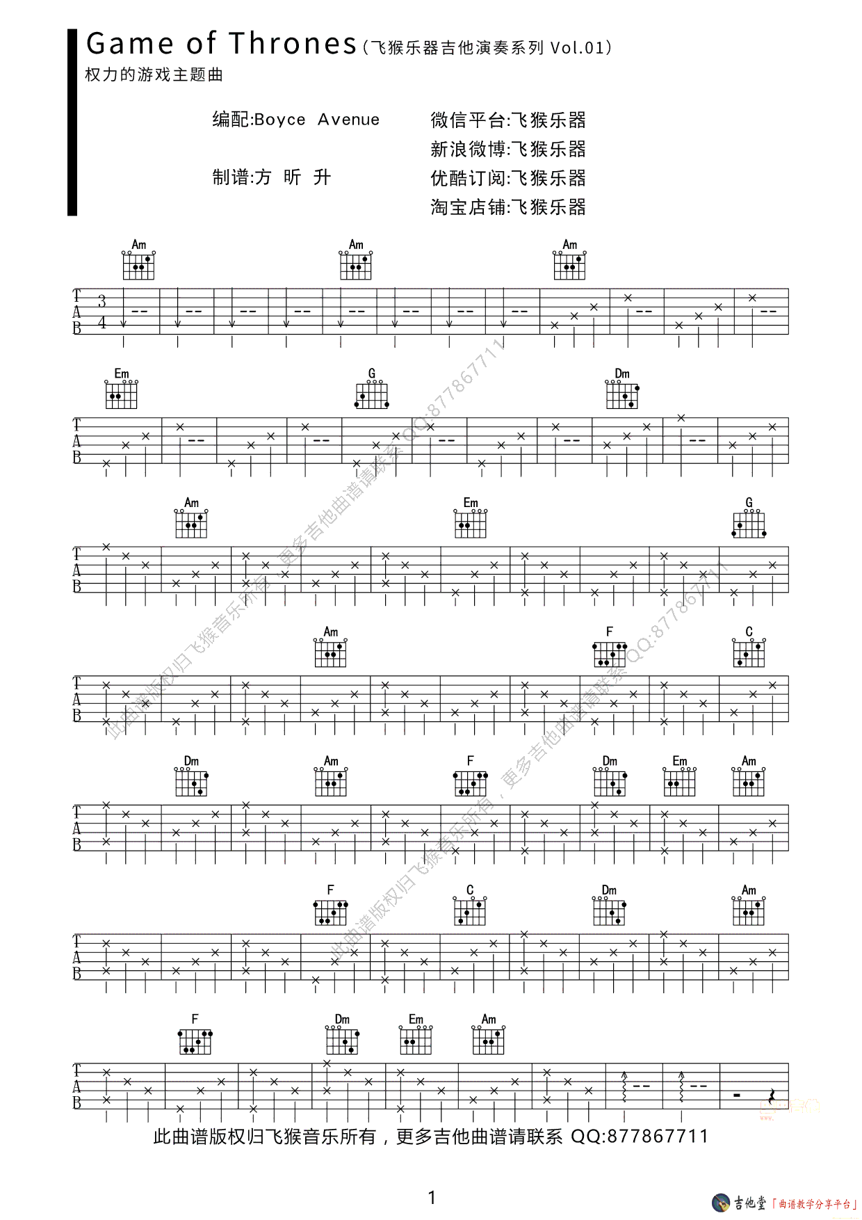 Game Of Thrones指弹谱 《权力的游戏》主题曲 吉他独奏谱
