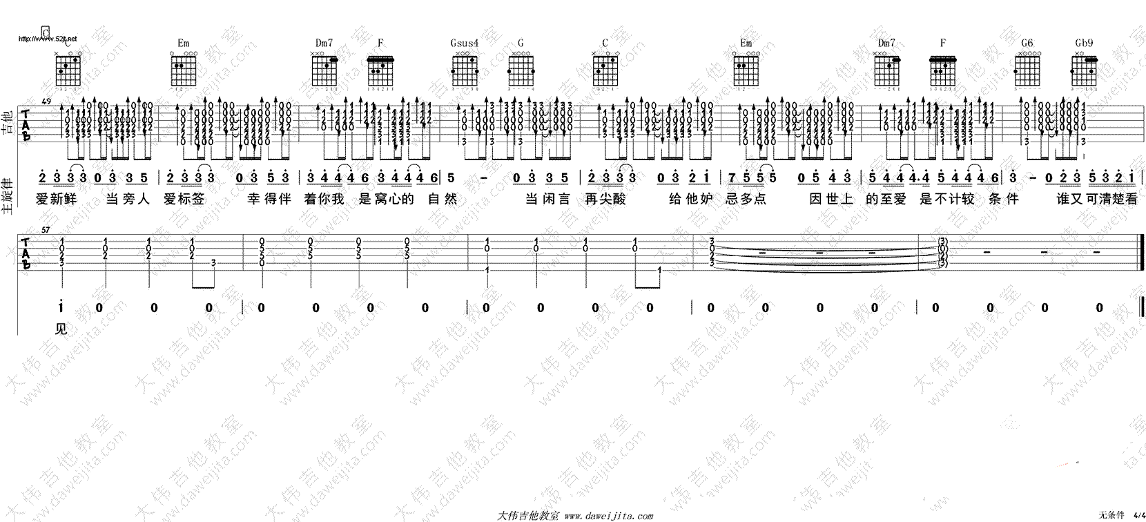 - 无条件吉他谱 陈奕迅 C调弹唱谱 高清图片谱