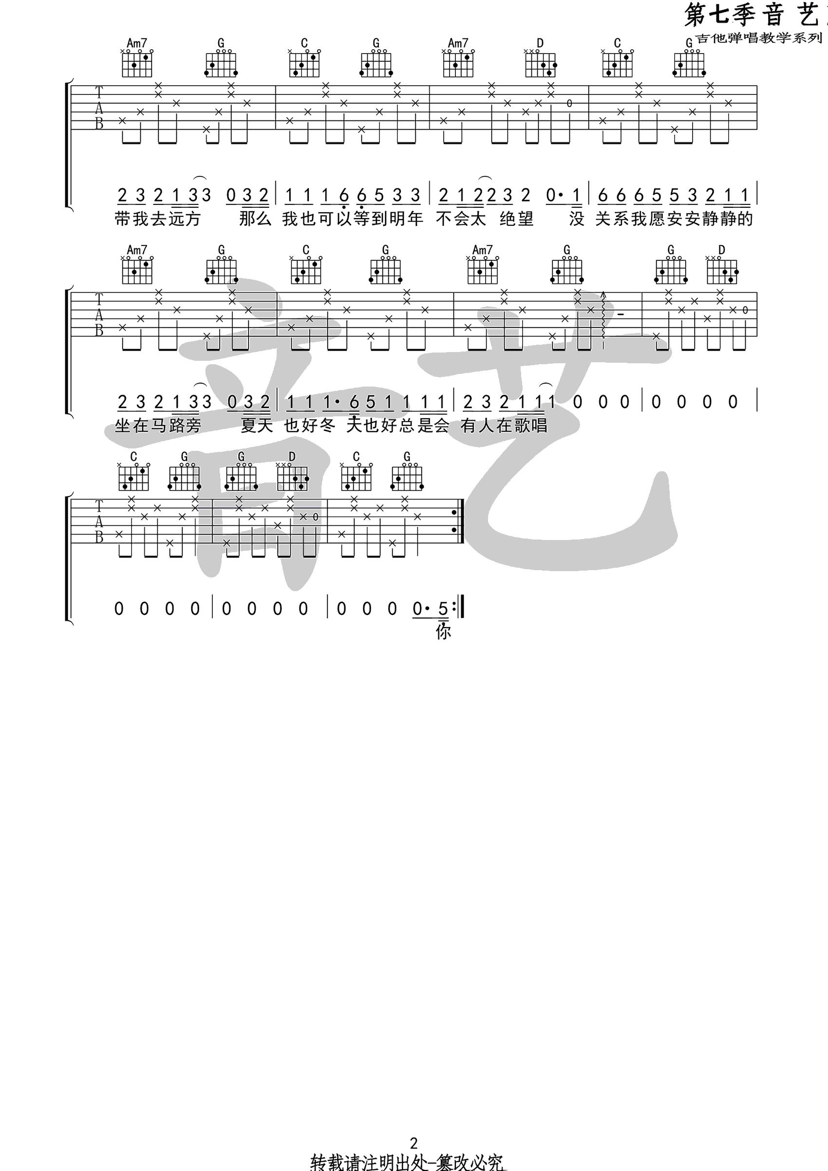 - 民谣在路上吉他谱 前冲乐队 G调弹唱谱 高清图片谱