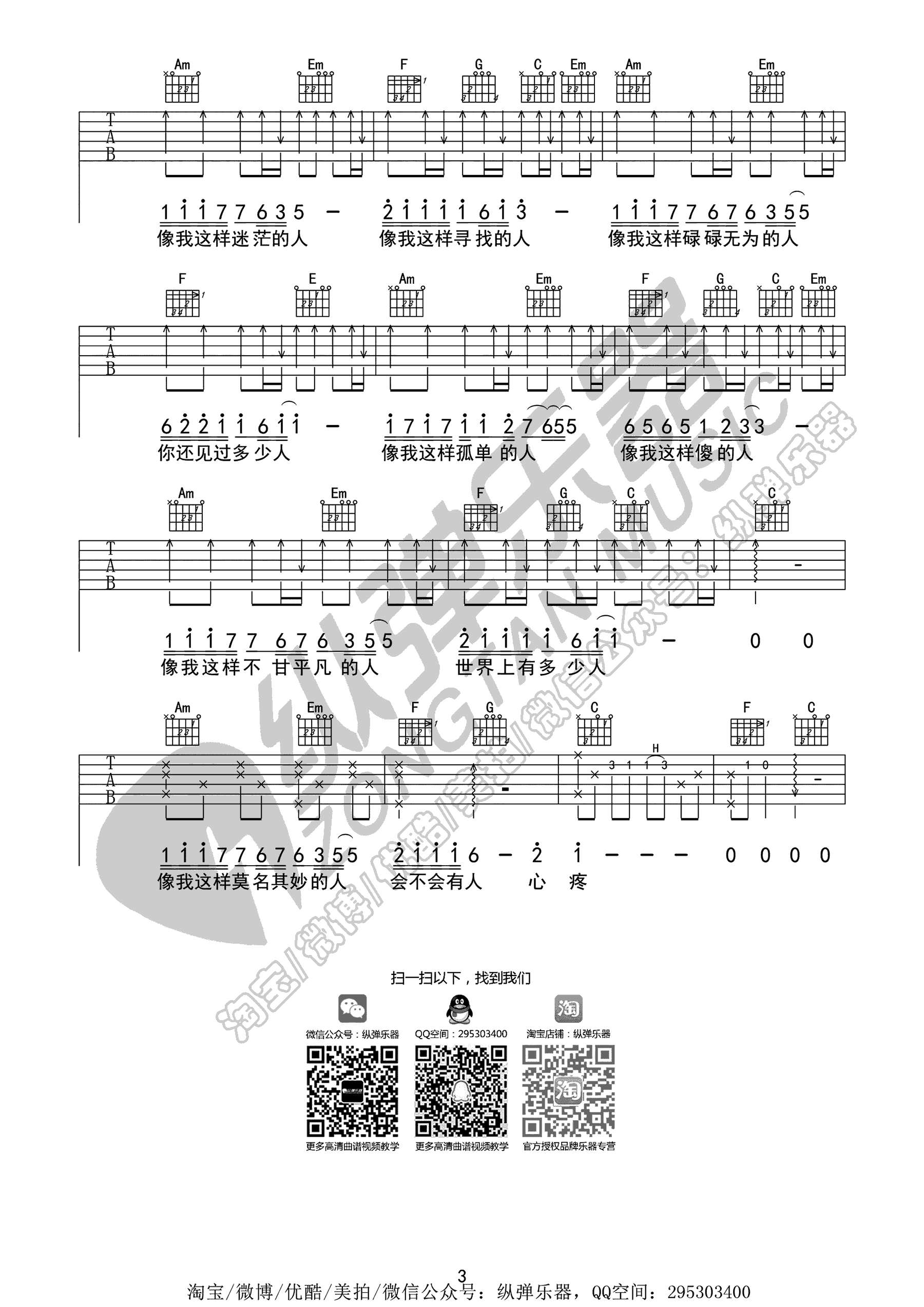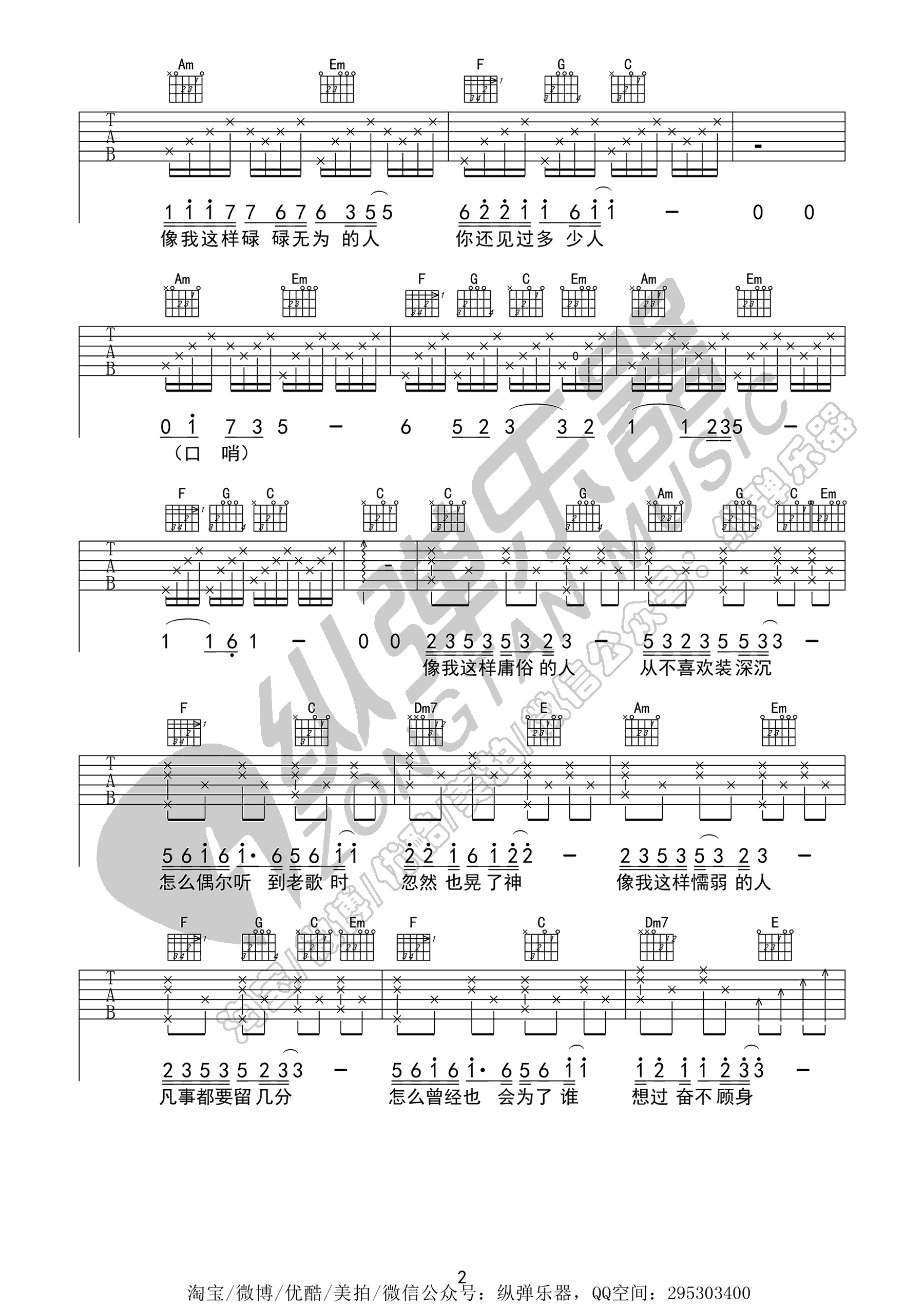 - 毛不易《像我这样的人》吉他谱 C调版本 六线谱弹唱谱