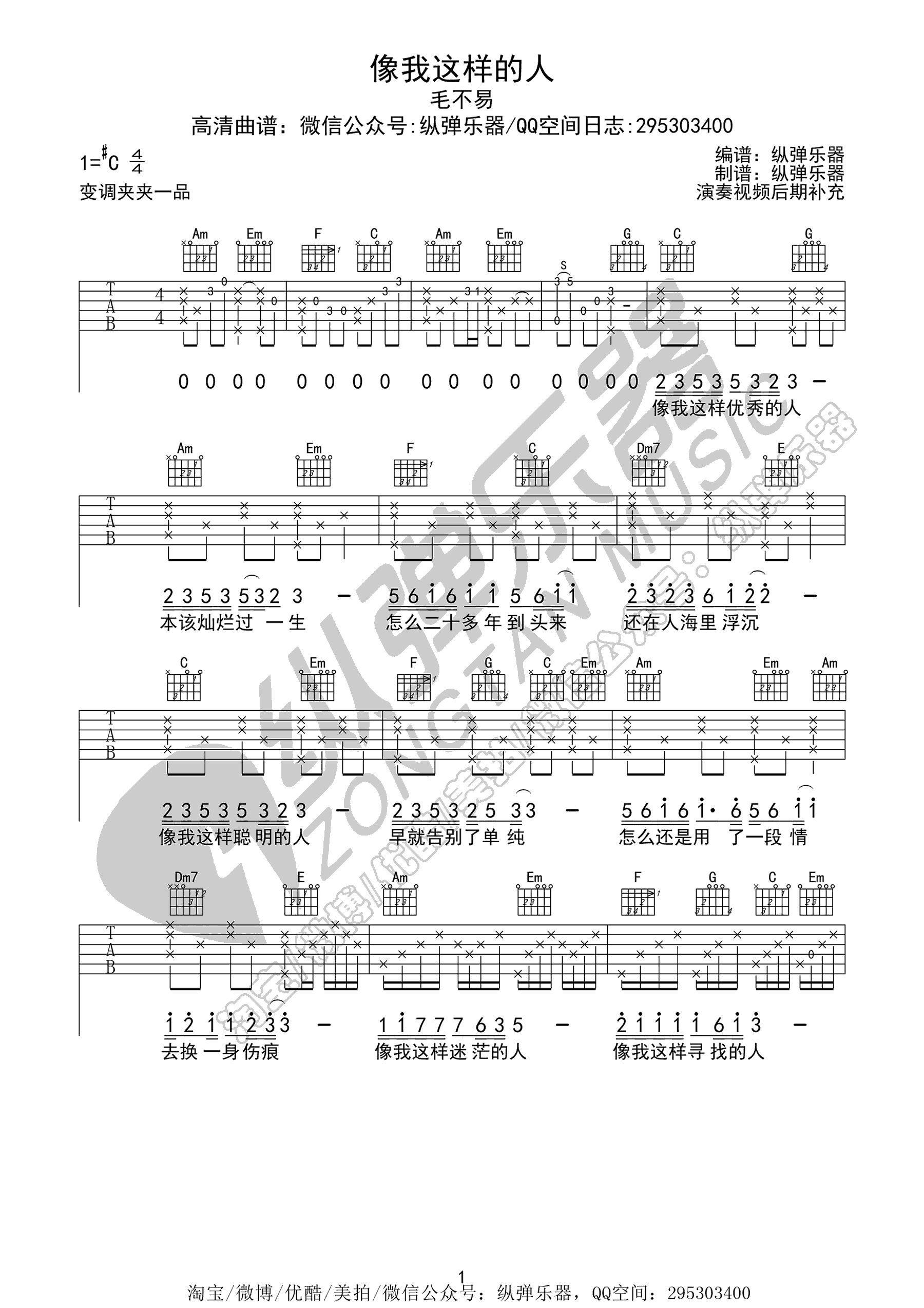 - 像我这样的人吉他谱 毛不易 C调六线谱 弹唱谱高清版