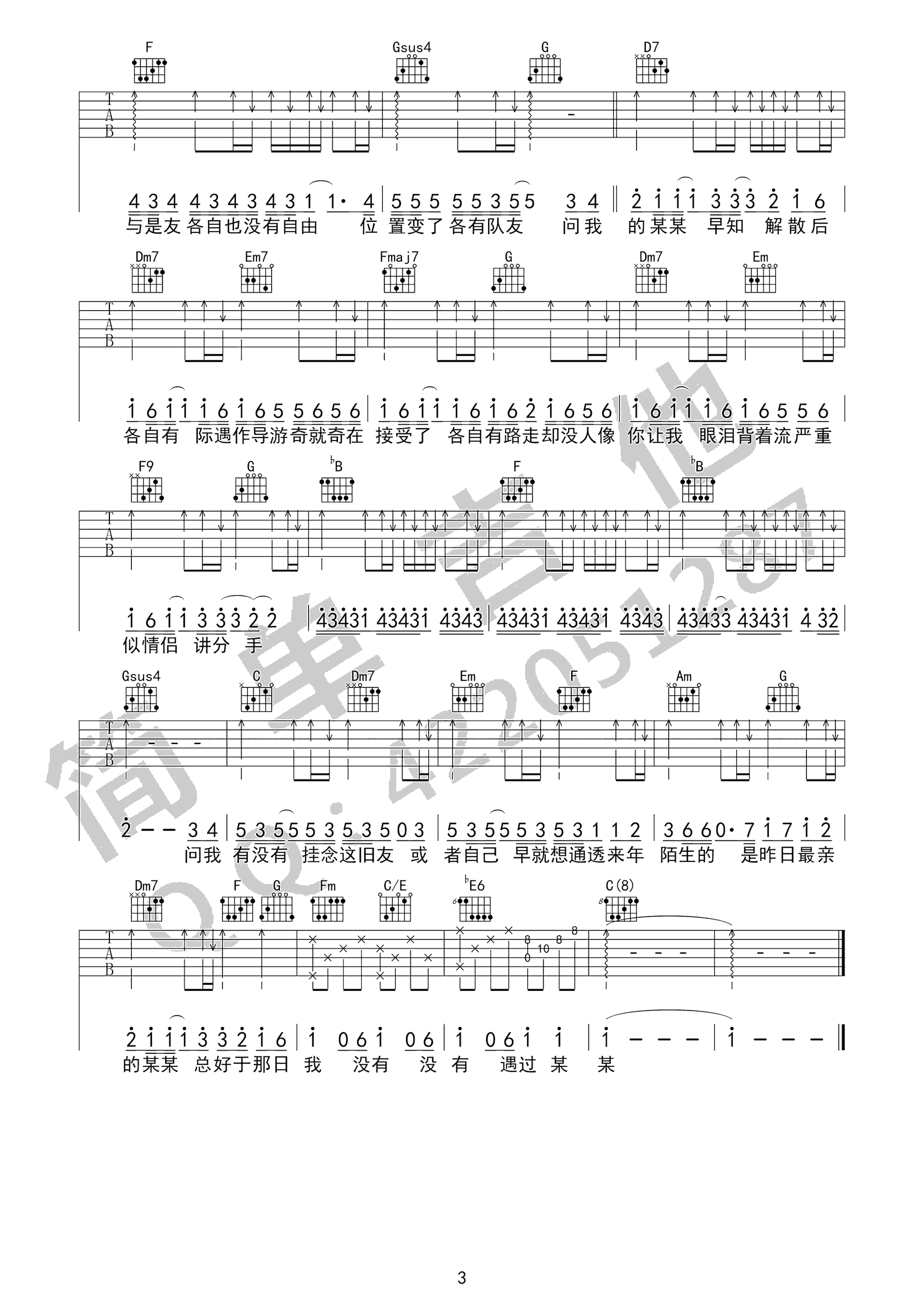 - 爱情转移吉他谱_C调简单版_陈奕迅|汪晨蕊_弹唱谱