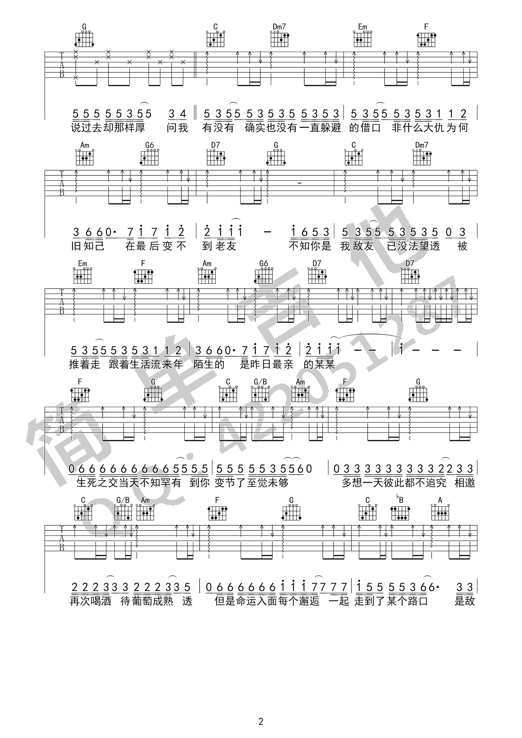- 人来人往吉他谱 陈奕迅 G调弹唱谱 六线谱高清版