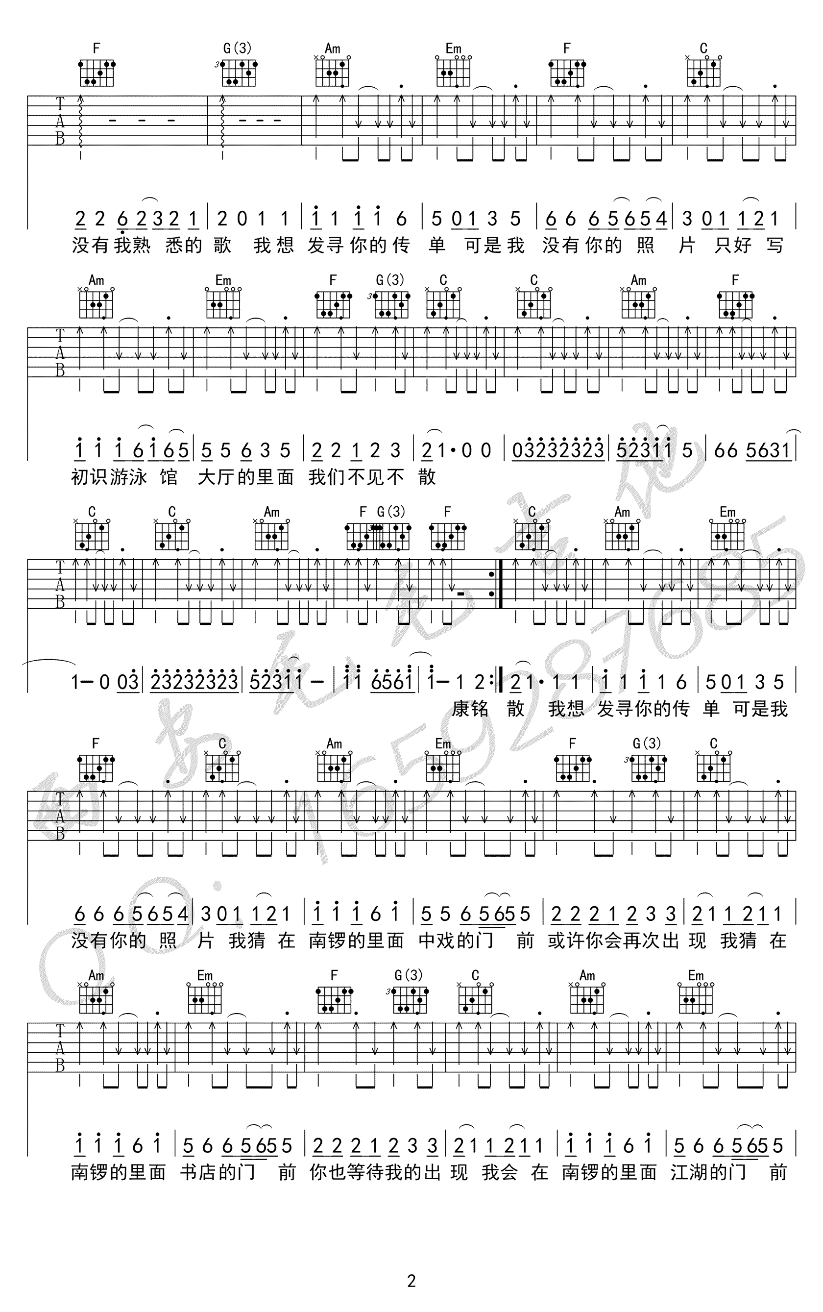 - 南方姑娘吉他谱 C调简单版 赵雷 弹唱六线谱