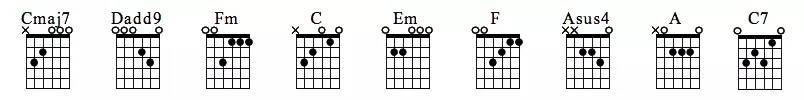 我怀念的吉他谱,孙燕姿经典情歌,C调指法,我怀念的六线谱,FINGER编配,易唱网整理分享。这首歌难度不高,同学们通过练习能容易将歌曲拿下来!左手部分涉及到以下和弦: