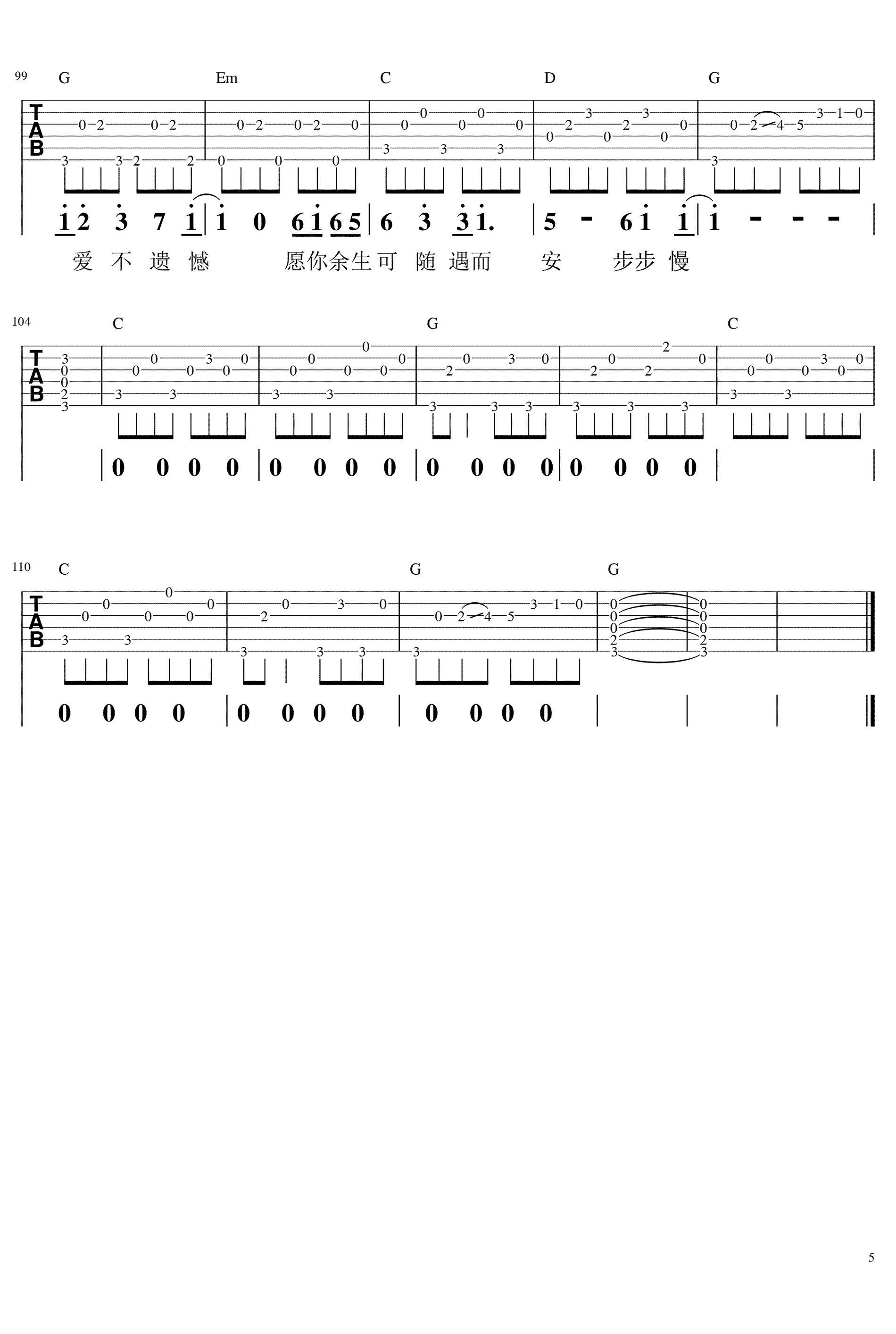 - 带你去旅行吉他谱 校长 G调弹唱谱 六线谱高清版