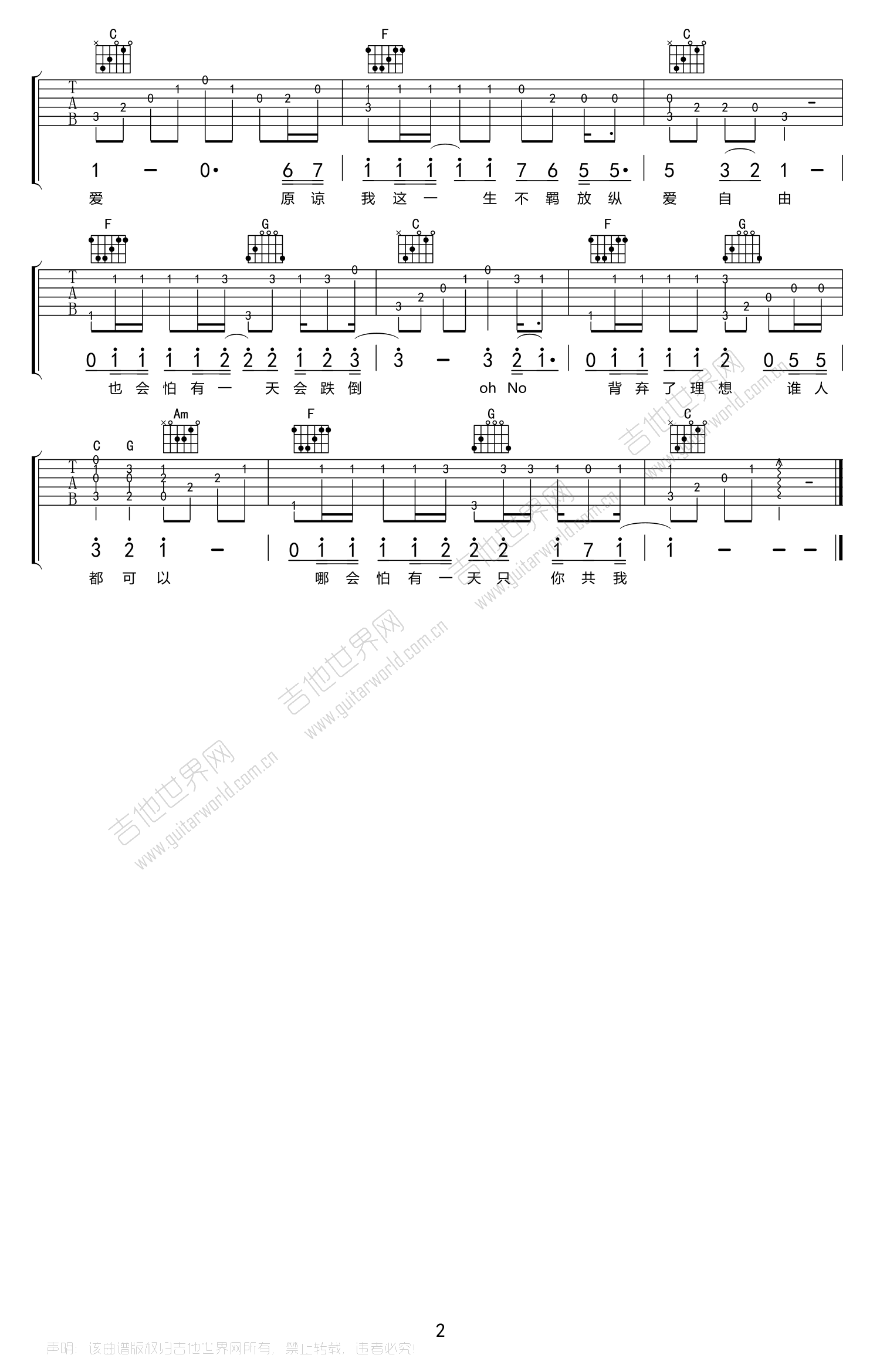 热门吉他谱(图片谱)