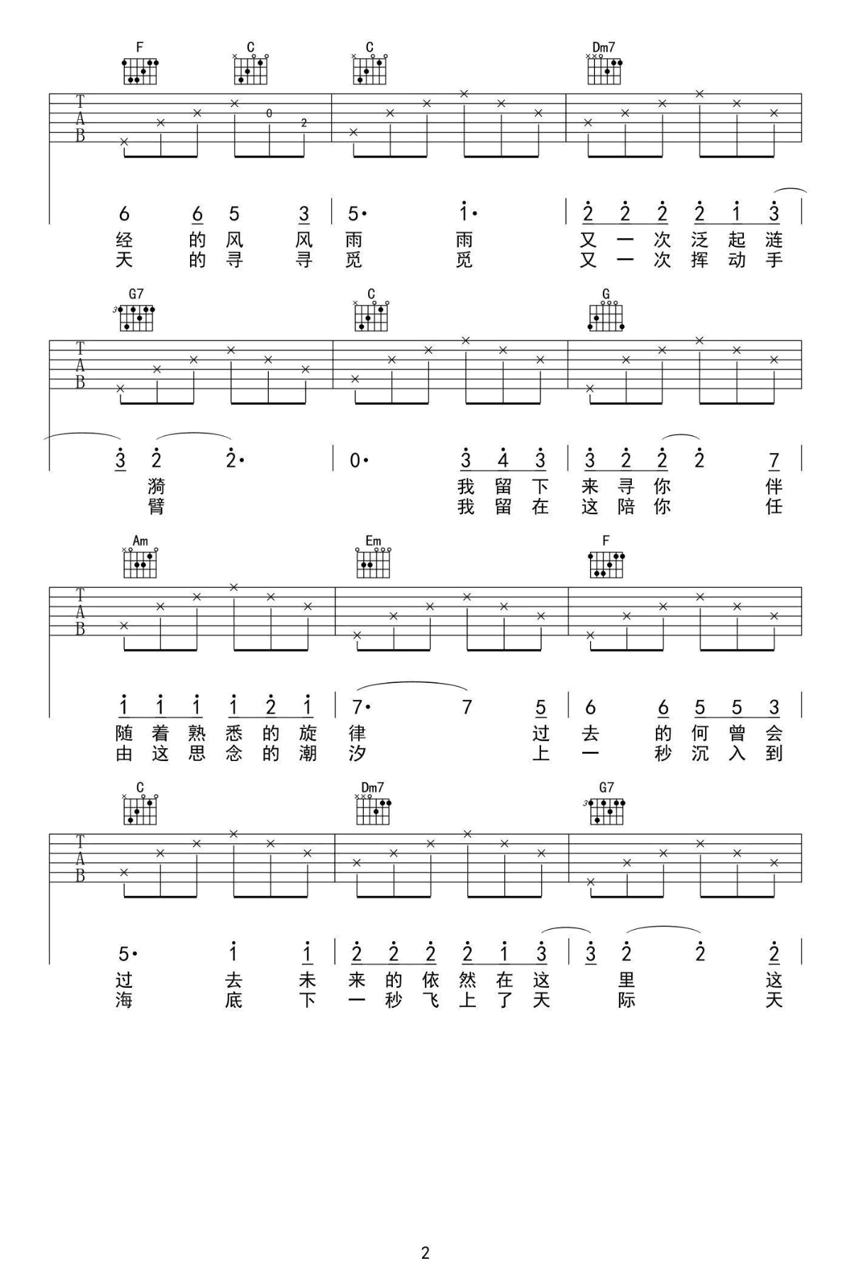 - 坐在巷口的那对男女吉他谱 自然卷 图片谱高清版