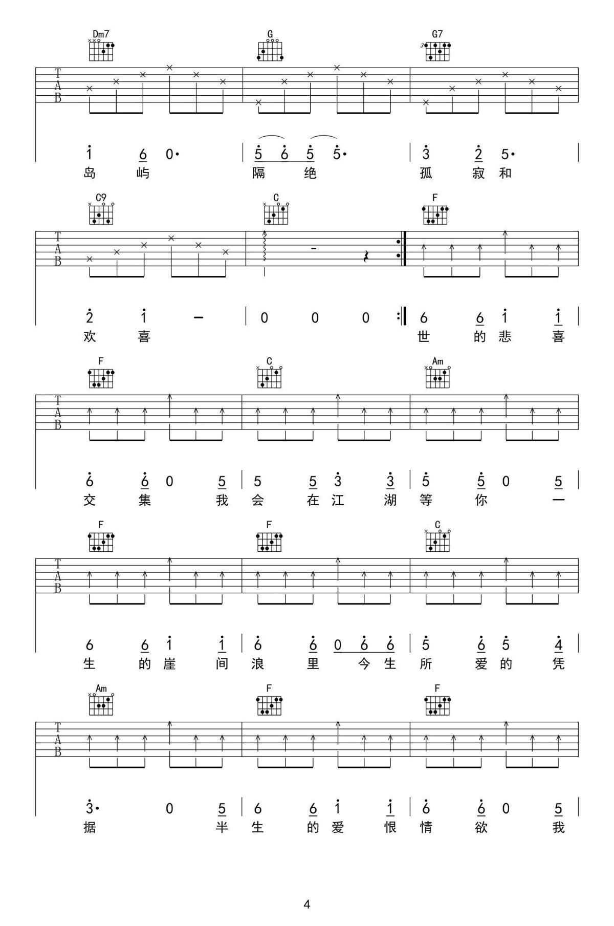 - 孤鸟吉他谱 靳松《孤鸟》六线谱 G调弹唱谱