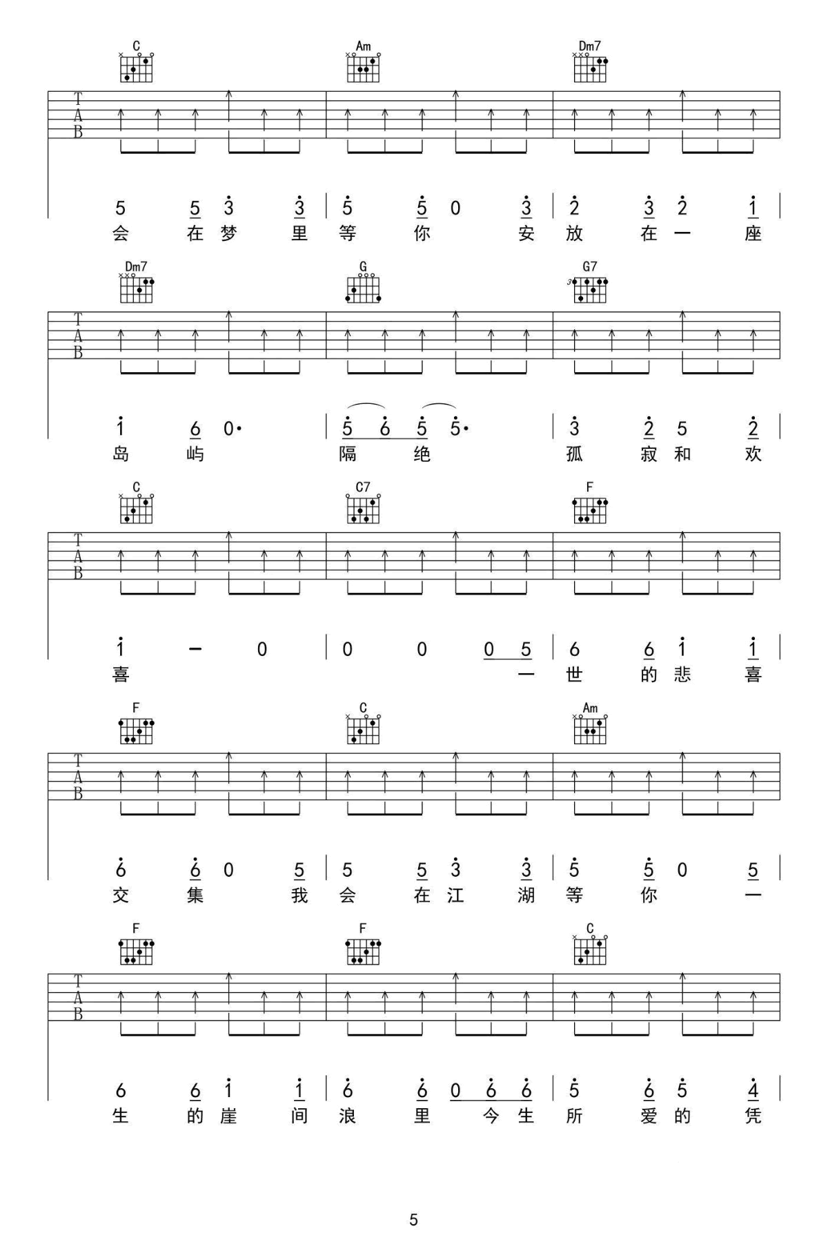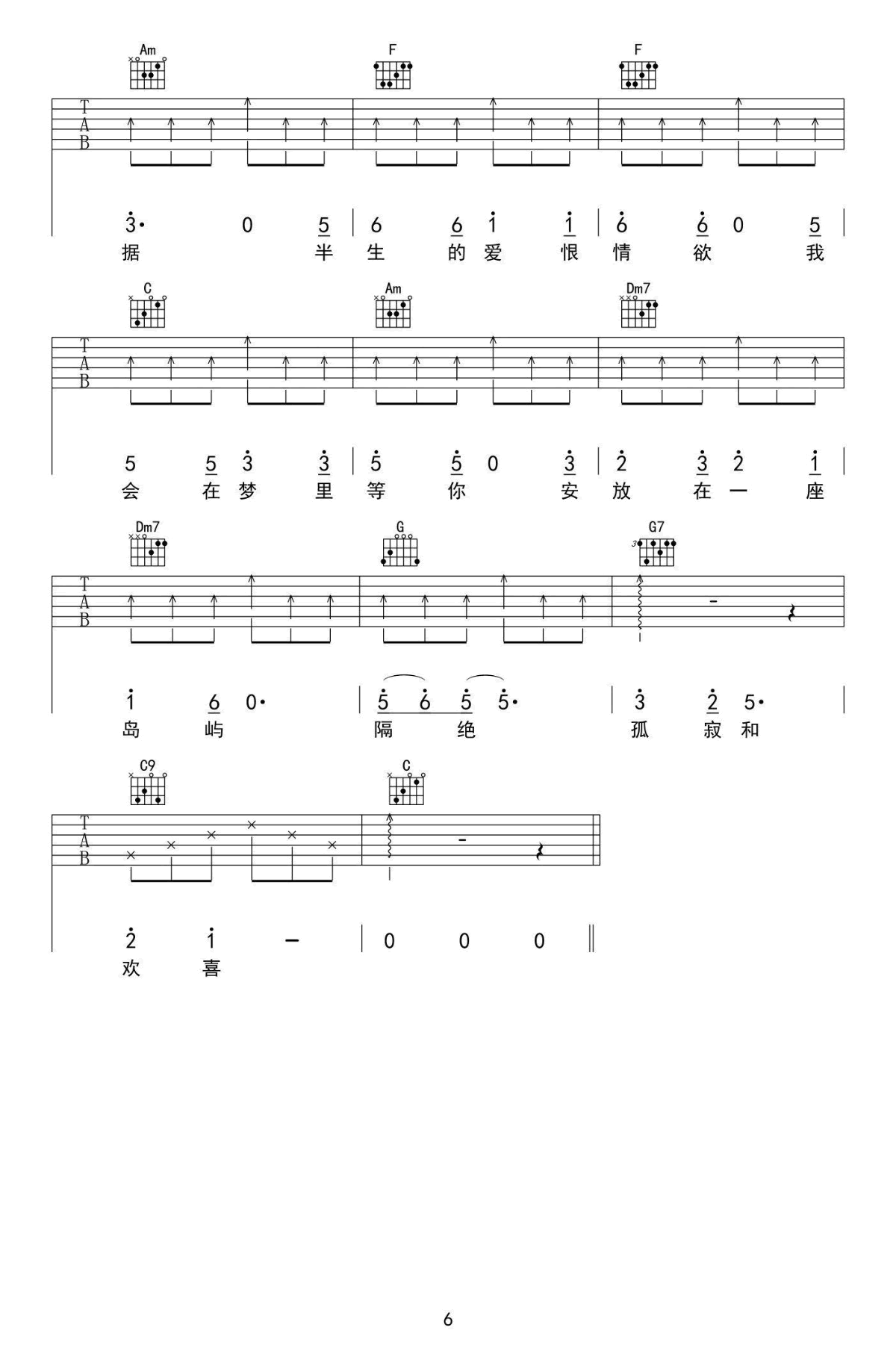 - Cannie《遥远的歌》吉他谱_六线谱_民谣歌曲弹唱