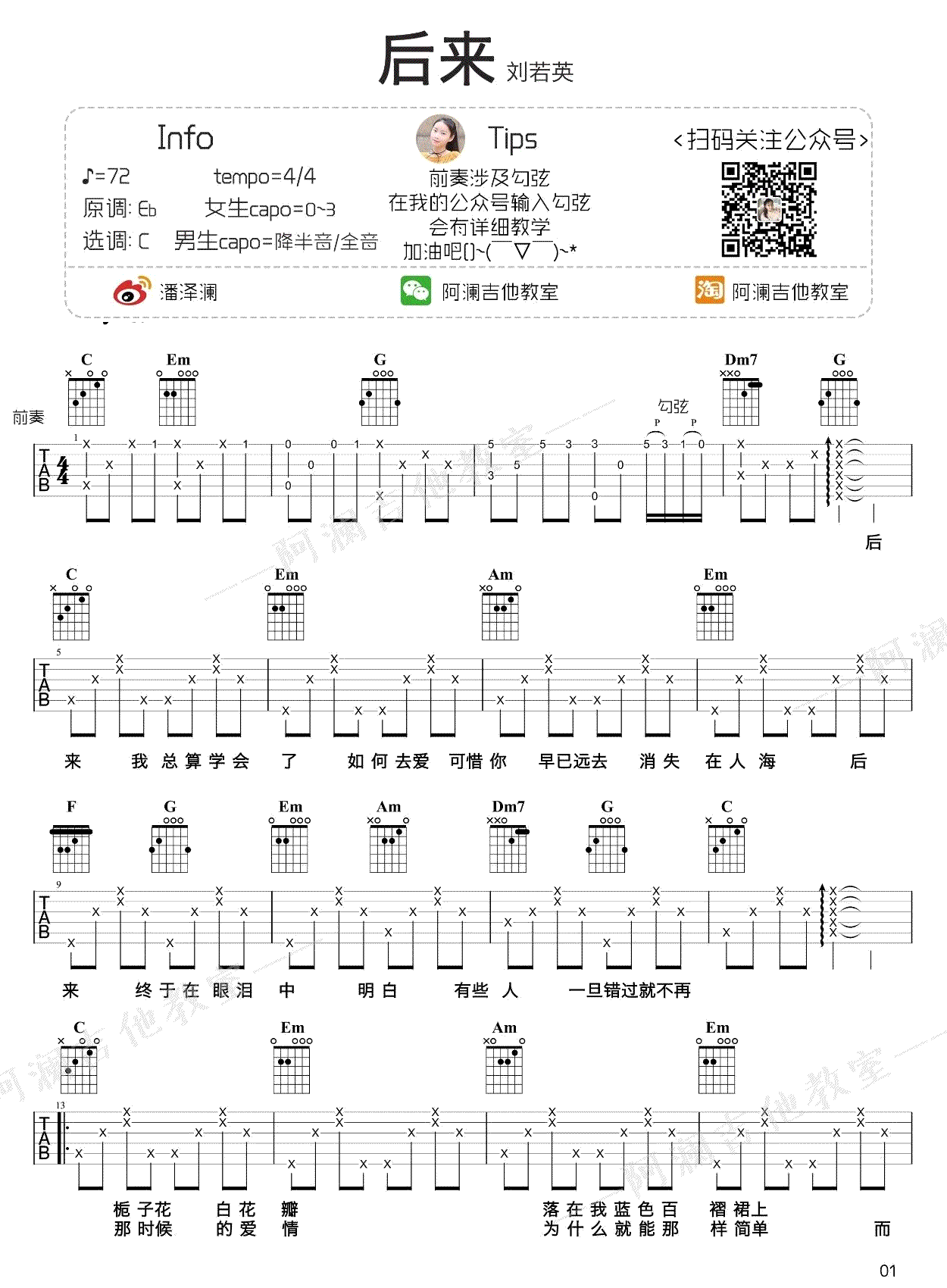 - 刘若英《后来》吉他谱_C调弹唱谱_高清图片谱
