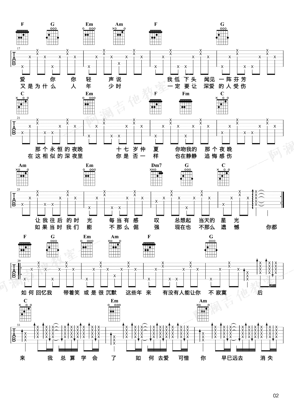 - 追光者吉他谱 G调高清弹唱谱 岑宁儿《夏至未至