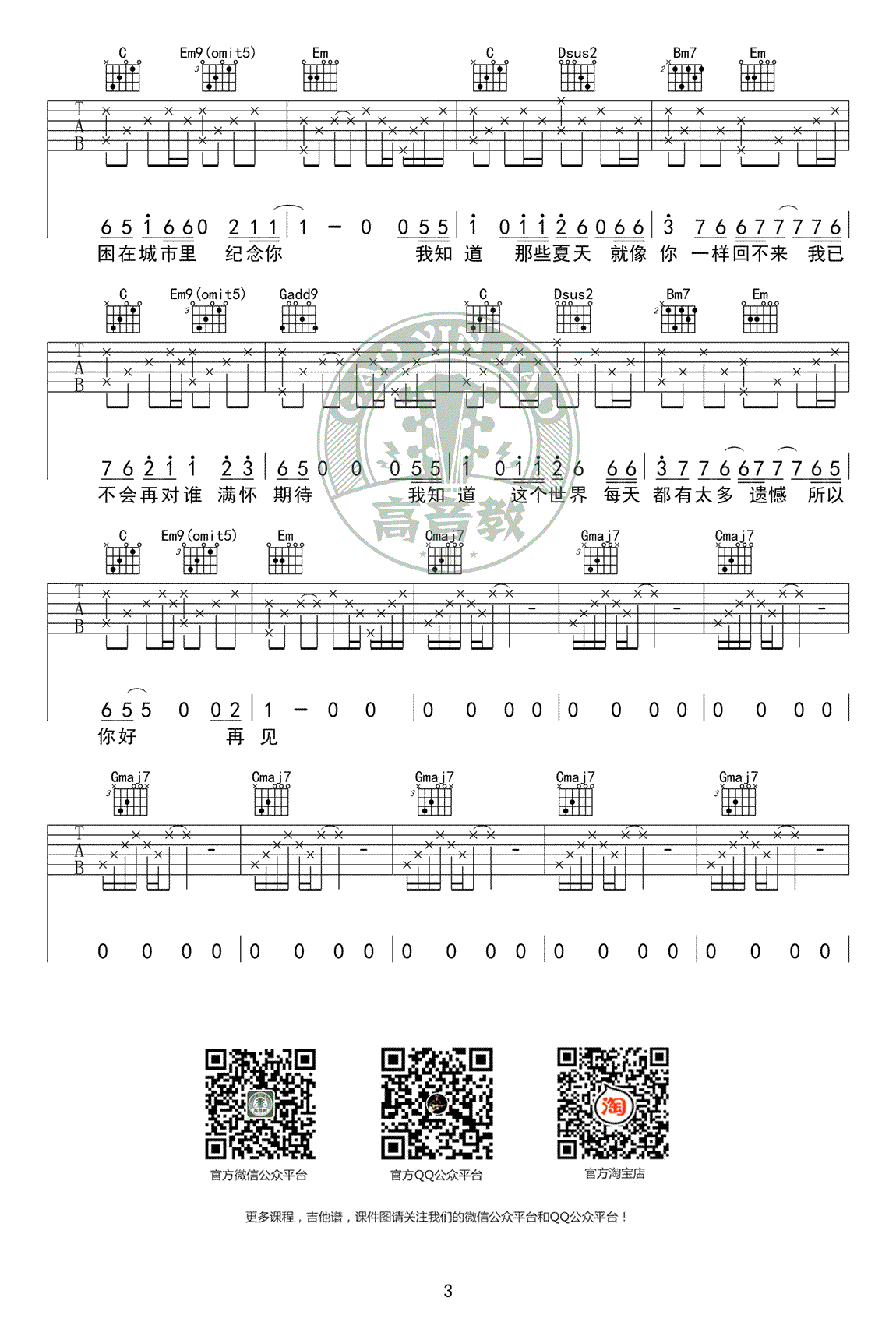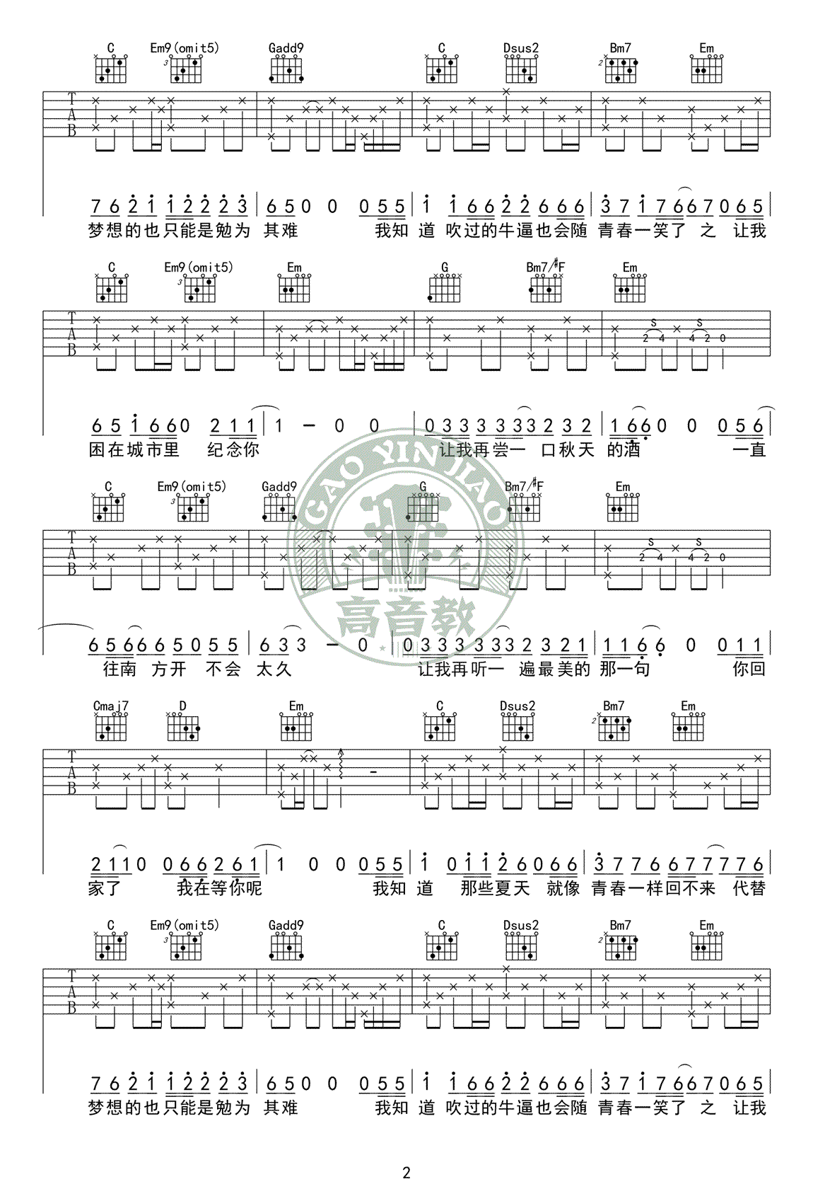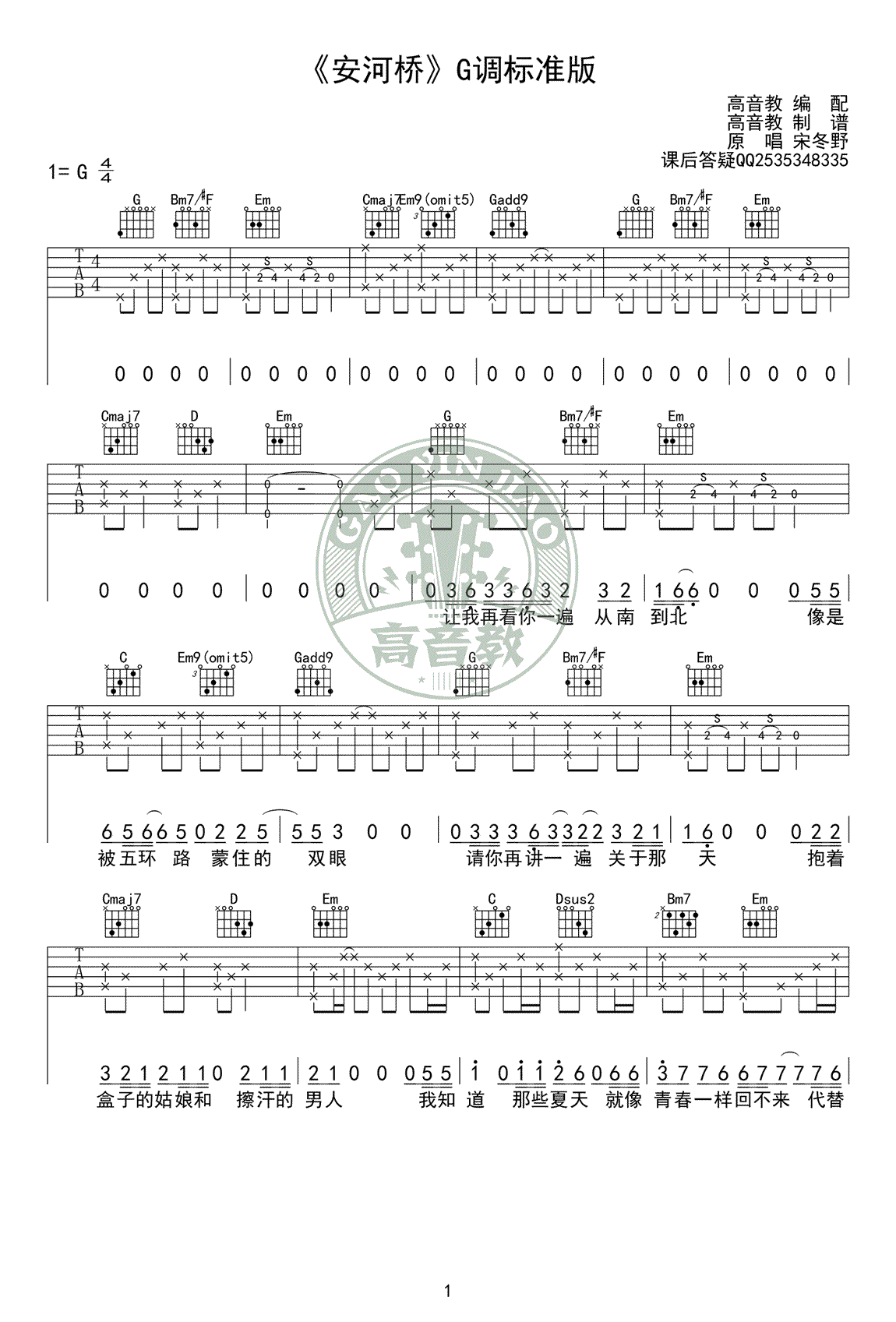 - 宋冬野《安和桥》吉他谱 G调高清版 六线谱