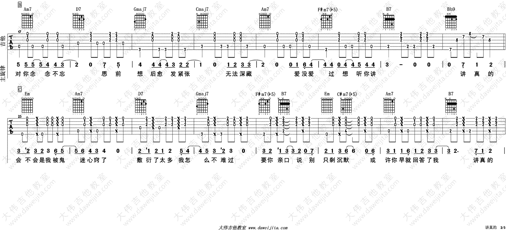 - 讲真的吉他谱 抖音歌曲 C调摩登兄弟版 吉他教学视频