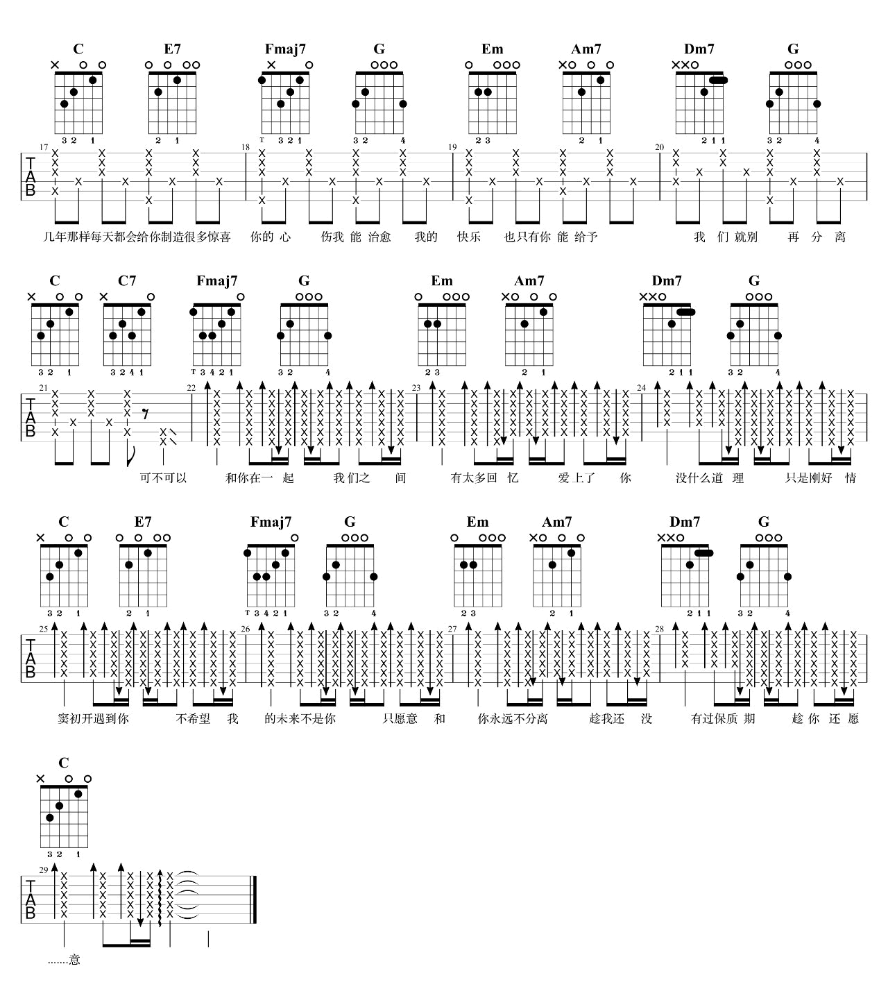 - 陈硕子《等你》吉他谱 C调六线谱 图片谱