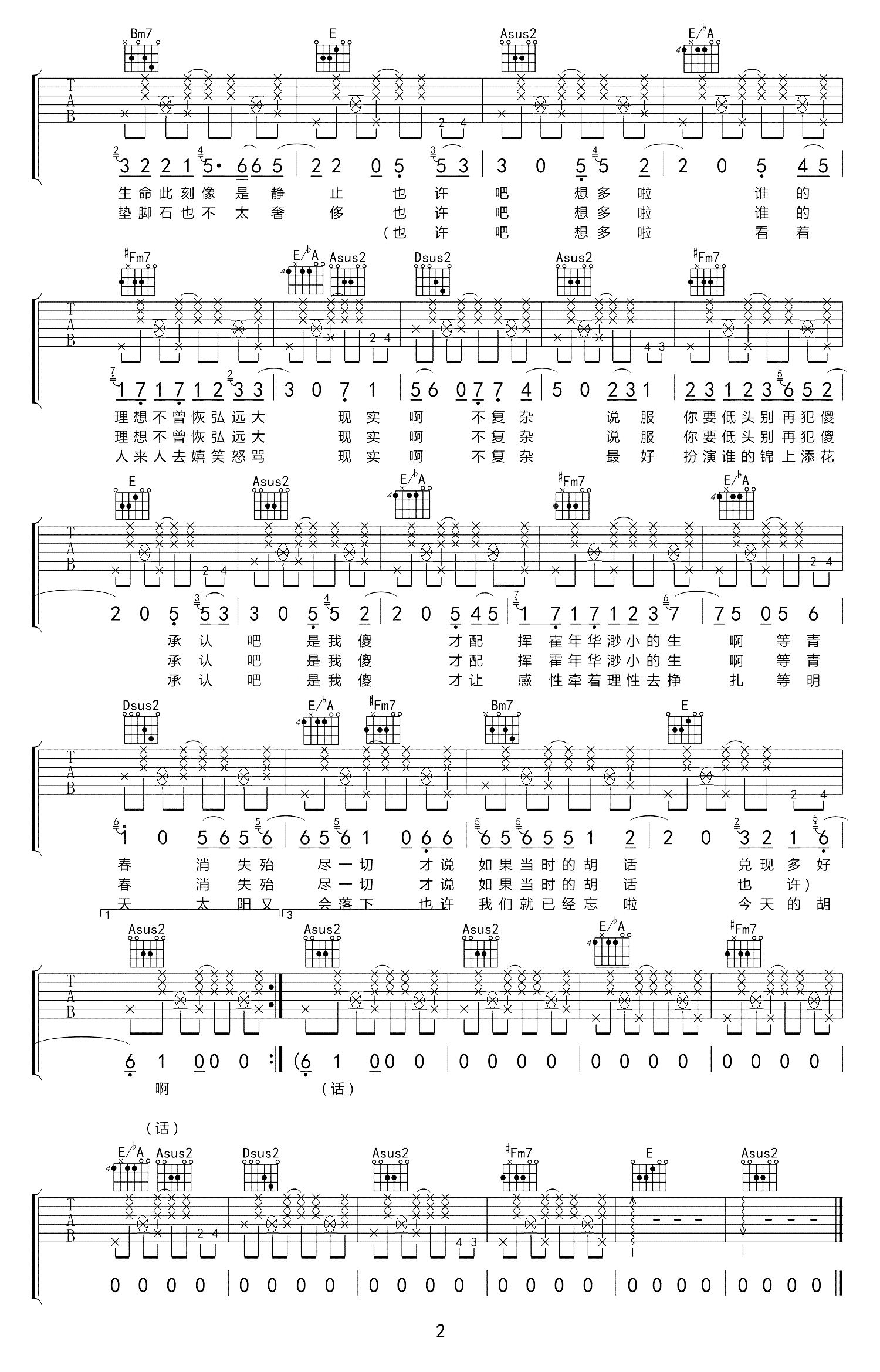 - 春风十里吉他谱 鹿先森乐队 高清弹唱谱 吉他弹