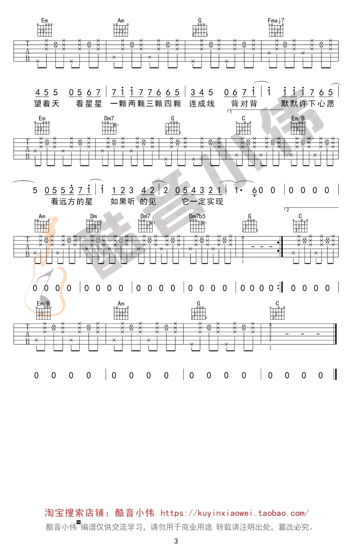 - 星晴吉他谱 周杰伦 G调六线谱 《星晴》吉他弹唱视频
