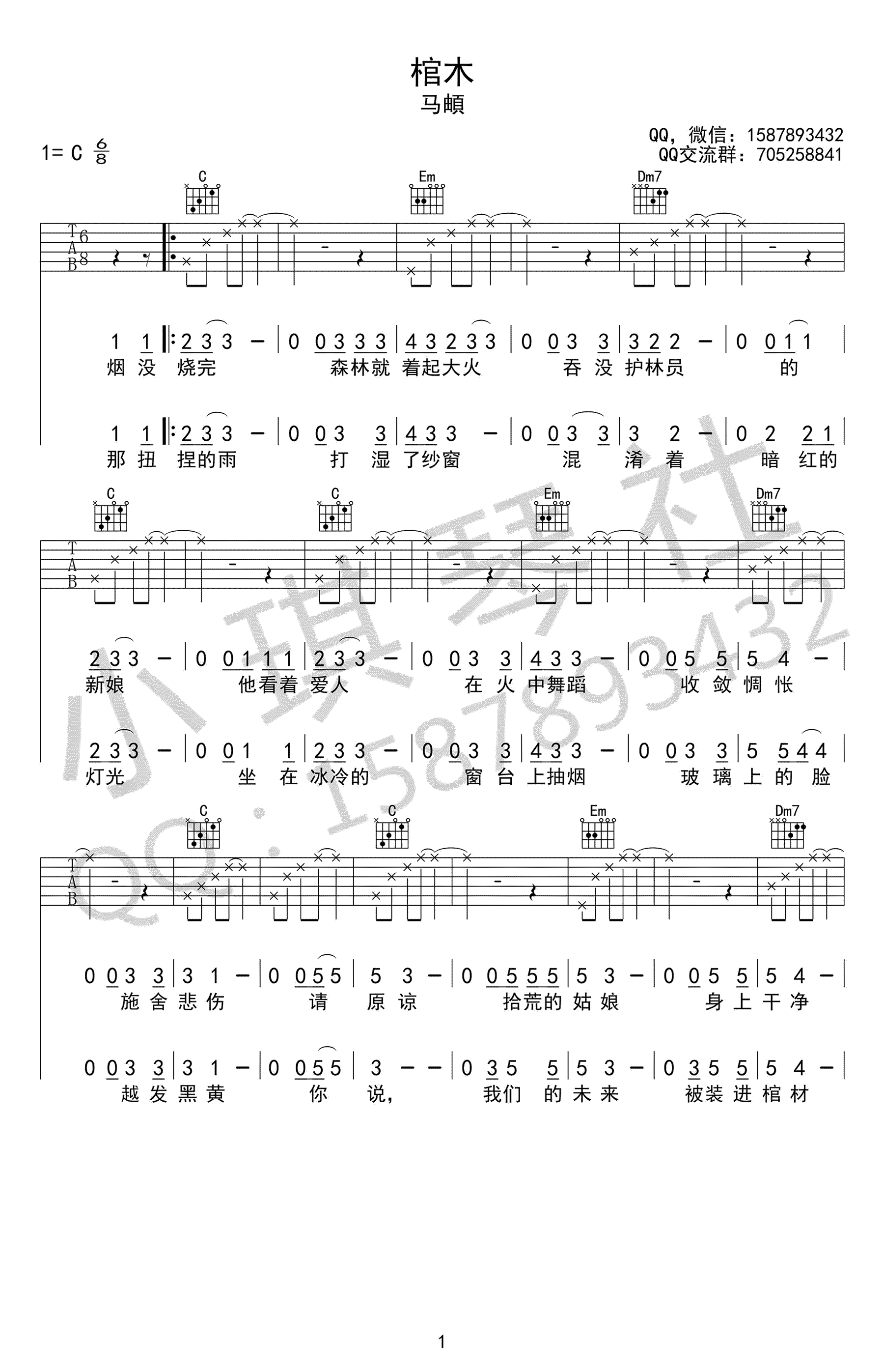 - 孟凡明《只只》吉他谱 C调六线谱 图片谱
