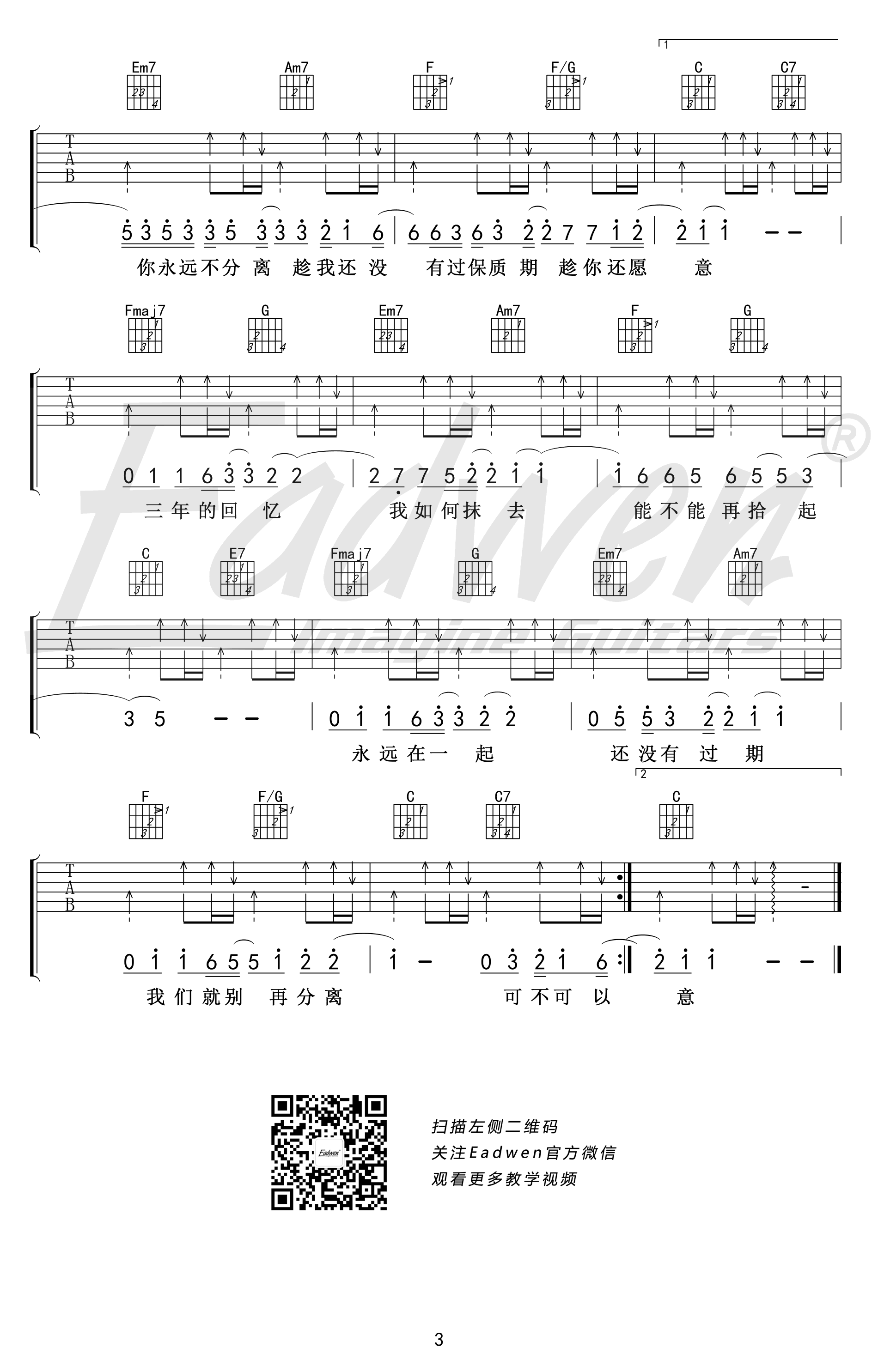 - 乐者《三年》吉他谱 C调弹唱谱 高清图片谱